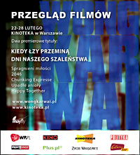 Dla pierwszych 10 osób, które zgłoszą się na d.nowak@polityka.com.pl, wpisując w temacie e-maila „Wong Kar Wai", mamy do rozdania dwuosobowe zaproszenia na niżej wymienione pokazy w ramach Przeglądu Wong Kar Waia.
