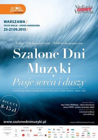 W dniach 25-27 września 2015 w Teatrze Wielkim – Operze Narodowej w Warszawie już po raz szósty zagości polska edycja La Folle Journée – Szalone Dni Muzyki. 3 dni – 60 koncertów – 950 artystów
