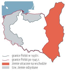 Już 26 lipca 1944 r. doszło do podpisania pomiędzy PKWN a ZSRR umowy o przejęciu administracji na ziemiach na zachód od Bugu. Granica wschodnia, zbliżona do tzw. linii Curzona z 1919 r., została potwierdzona na konferencji w Jałcie. Natomiast granicę zachodnią (na Nysie Łużyckiej i Odrze) ostatecznie ustalono w Poczdamie. Do Polski włączono obszar dawnego Wolnego Miasta Gdańska oraz część Prus Wschodnich. Granica z Czechosłowacją wróciła do przebiegu z 1937 r.