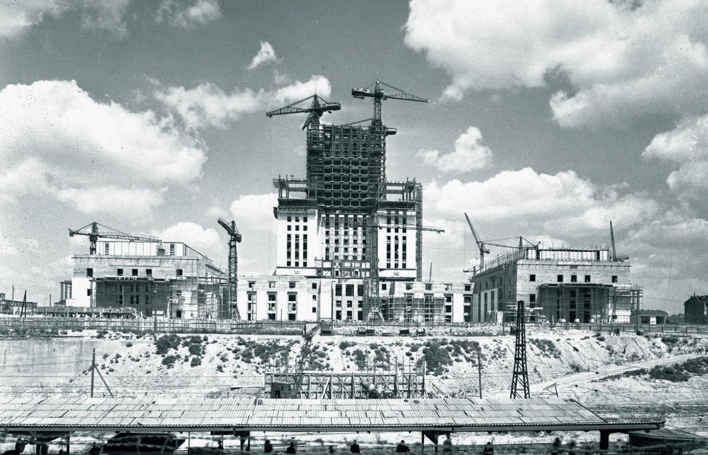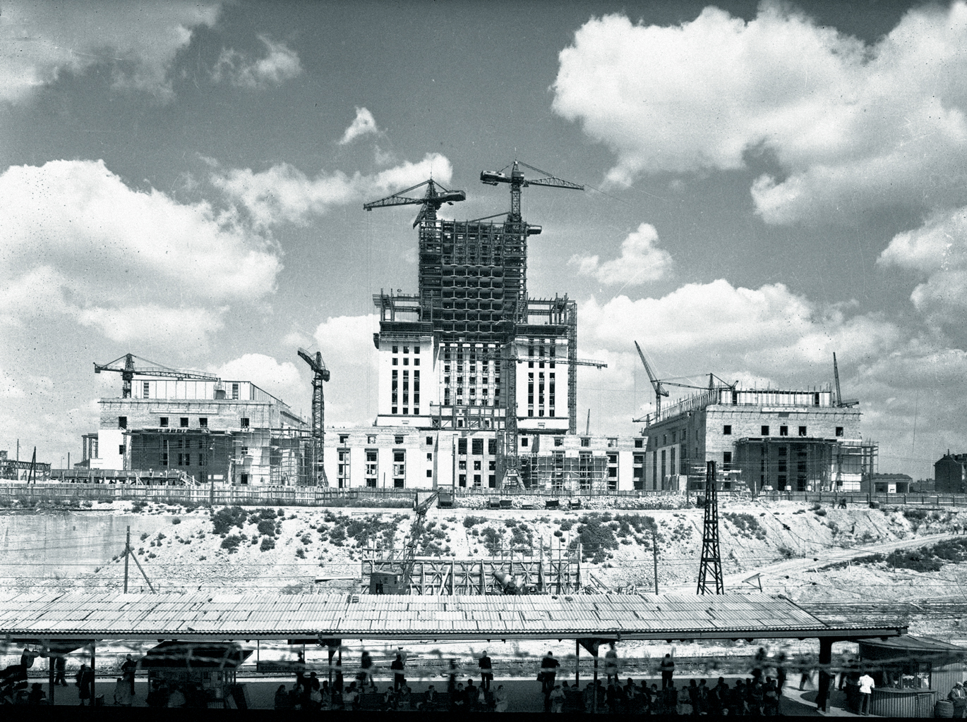 Zespołowi architektów sowieckich przewodził Lew Rudniew, a współpracowała z nimi grupa architektów polskich z Józefem Sigalinem na czele. Cała grupa wybrała się w podróż po Polsce, by obejrzeć najważniejsze zabytki, a potem wprowadzić do projektu polskie akcenty. Budowa ruszyła 2 maja 1952 r. Pracowało przy niej 3,5 tys. robotników z ZSRR, dla których wybudowano na Jelonkach osiedle Przyjaźni Polsko-Radzieckiej, złożone z baraków i tzw. domków fińskich – dla inżynierów.