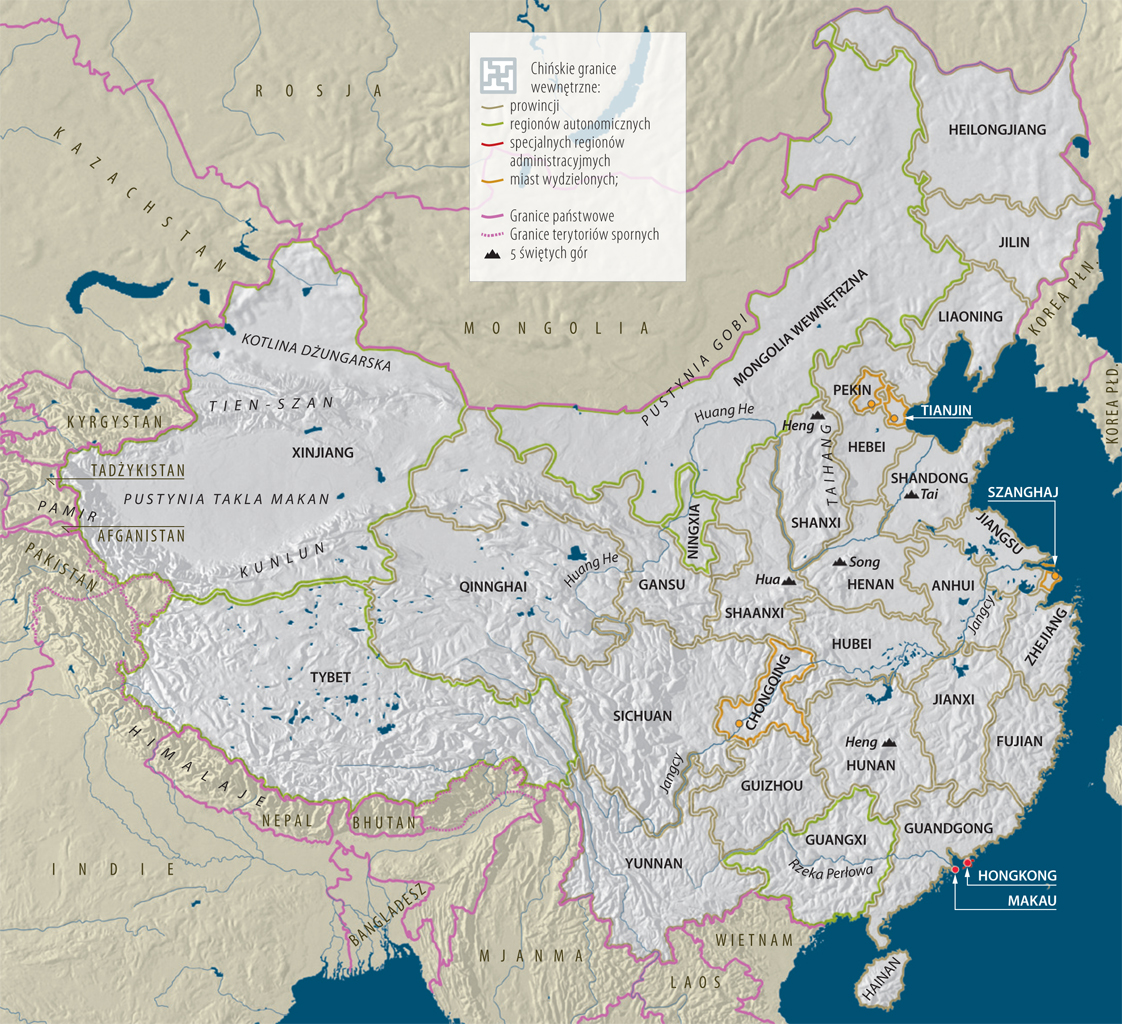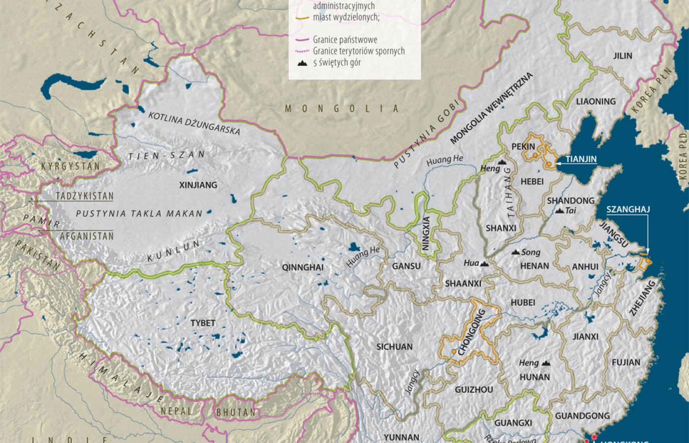 DALEKIE CHINY. Zabrzmi trywialnie, ale dla porządku trzeba to ustalić: Chiny są państwem ogromnym, trzecim pod względem wielkości na świecie. Ich terytorium ustępuje tylko Rosji i Kanadzie, niewiele także całej Europie (licząc razem z europejską częścią Rosji). Trzy strefy klimatyczne, od śnieżnej i mroźnej Mandżurii, z tajgą na północy, aż po roślinność podzwrotnikową na południu, lasy deszczowe, pustynie na powierzchni jednej czwartej kraju, himalajskie lodowce, liczne łańcuchy górskie pokrywające prawie 60 proc. państwa, potężne rzeki, jeziora, kilka mórz, wyspy i wielkie niziny oraz aż 160 ponadmilionowych miast czynią Chiny miejscem równie różnorodnym jak Europa. Choć w Europie uważanym raczej za monolit.