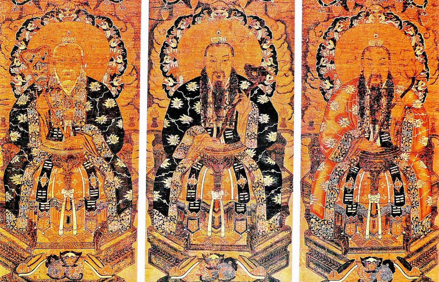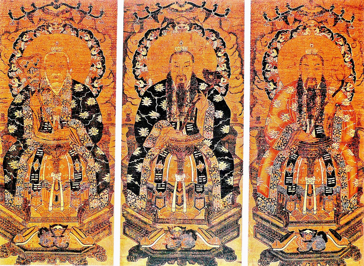 San qing – trójca czystych. Trzy najwyższe bóstwa związane przede wszystkim z tradycją Duchowego Klejnotu, symbolizujące różne aspekty Dao: 1. Yuanshi Tianzun (Niebiański Czcigodny Pierwotnego Początku); pojawił się na początku Wszechświata, ale sam nie posiada początku; stworzył niebo i ziemię, jest praźródłem wszechrzeczy i nauczania w tekstach Lingbao. Jego siedzibą są Niebiosa Nefrytowej Czystości (Yuqing). 2. Lingbao Tianzun (Niebiański Czcigodny Duchowego Klejnotu); przebywa w Niebiosach Najwyższej Czystości (Shangqing), jest strażnikiem tekstów Duchowego Klejnotu, w jego gestii znajduje się czas, epoki i regulowanie działania yin i yang. 3. Niebiański Czcigodny Dao i De (Daode Tianzun), inaczej nazywany Taishang Laojun – Najwyższy Pan Lao; jego zadaniem jest przekazywanie nauk taoistycznych, przyjmuje różne postaci (np.