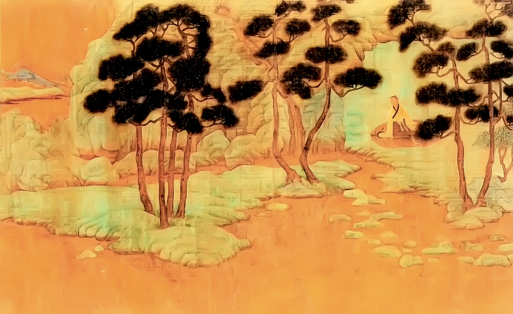 Przybyszowi z Europy zwiedzającemu wystawę malarstwa chińskiego zastanawiające może wydać się to, że duża część obrazów to pejzaże, a prawie wszystkie są do siebie zbliżone, jeśli chodzi o kompozycję: przedstawiają góry, kilka drzew, jezioro lub strumień i jakieś małe postacie ludzkie zagubione pomiędzy skałami, przeprawiające się przez górski mostek czy siedzące w oknie górskiej chaty. Wyznawca geometrycznie wykreślonej perspektywy zbieżnej może również kręcić głową na zniekształcenia i niekonsekwencje w przedstawianiu tego, co blisko, i tego, co daleko. Co widzimy i jak to wytłumaczyć?