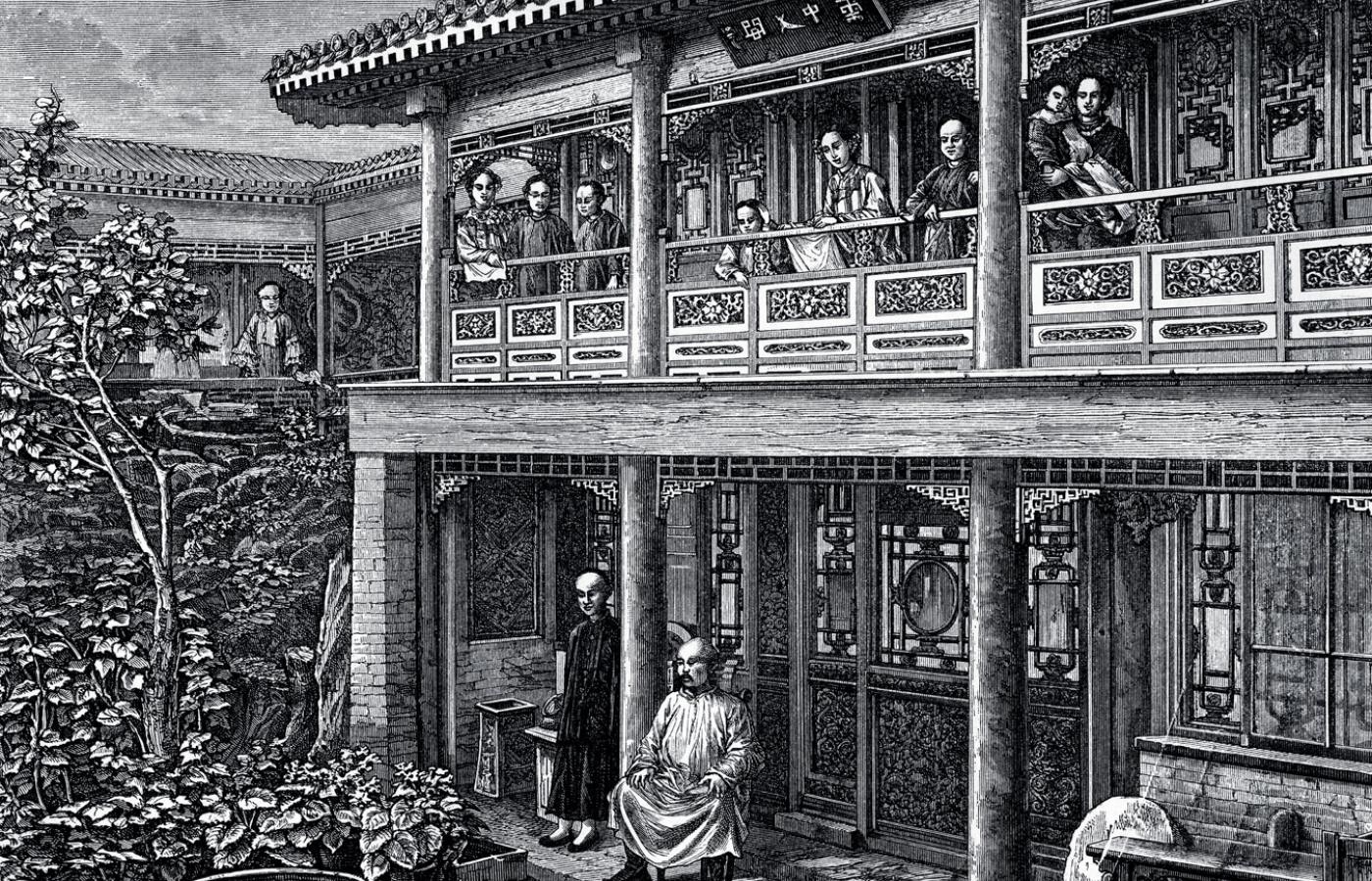 Dom. Podstawowa i zasadnicza różnica pomiędzy budynkiem chińskim a nowożytnym europejskim polega na tym, że w Chinach to nie ściany pełniły rolę elementu nośnego dla dachu, ale kolumny. Budowę zaczynano od stworzenia prostokątnej, kamiennej podstawy z jarzmami, w których utwierdzano rzędy kolumn, każda z jednego, litego pnia drzewa. Na nich wznosił się skomplikowany system belek i wsporników, na których budowano dach. Ściany stawiano na koniec, poprzez wypełnienie przestrzeni pomiędzy kolumnami, najczęściej również elementami drewnianymi.
