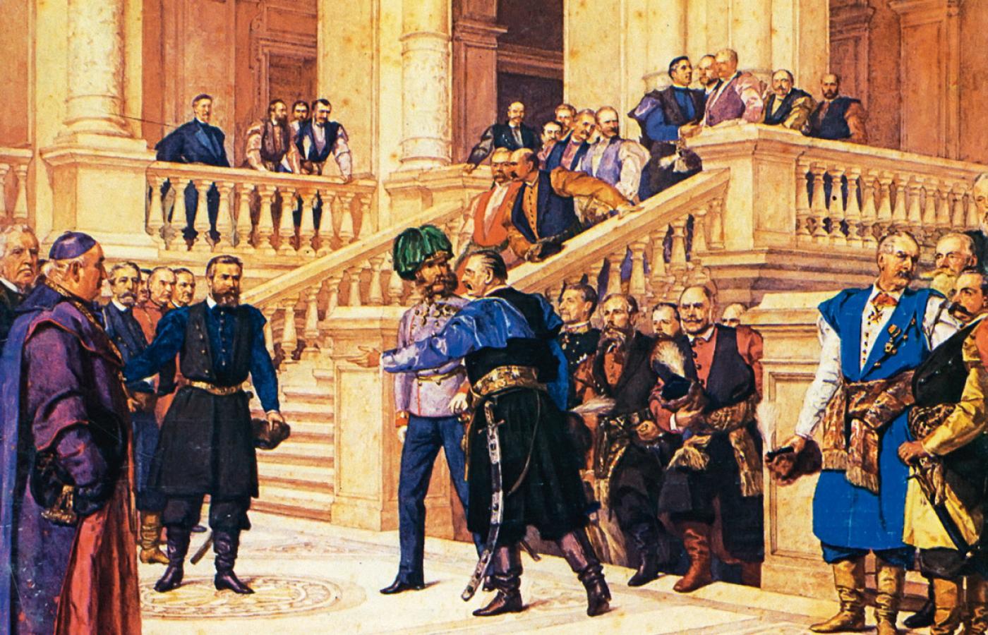 AUSTRO-WĘGRY. Po przegranej w wojnie we Włoszech w 1859 r. i z Prusami w 1866 r. Austria stanęła przed koniecznością modernizacji i odejścia od centralistycznej organizacji państwa. Kraj, gdzie mniejszości (fakt, że wiele i różnych) stanowiły prawie 80 proc. ludności, nie miał szans na przetrwanie w nowoczesnej i demokratyzującej się Europie. Pierwsze zmiany zapoczątkował dekret cesarza Franciszka Józefa z 20 października 1860 r. wprowadzający podział państwa na autonomiczne kraje. Finałem było przekształcenie Austrii, od czerwca 1867 r., w unikatowy twór państwowy: austro-węgierską monarchię dualistyczną.
