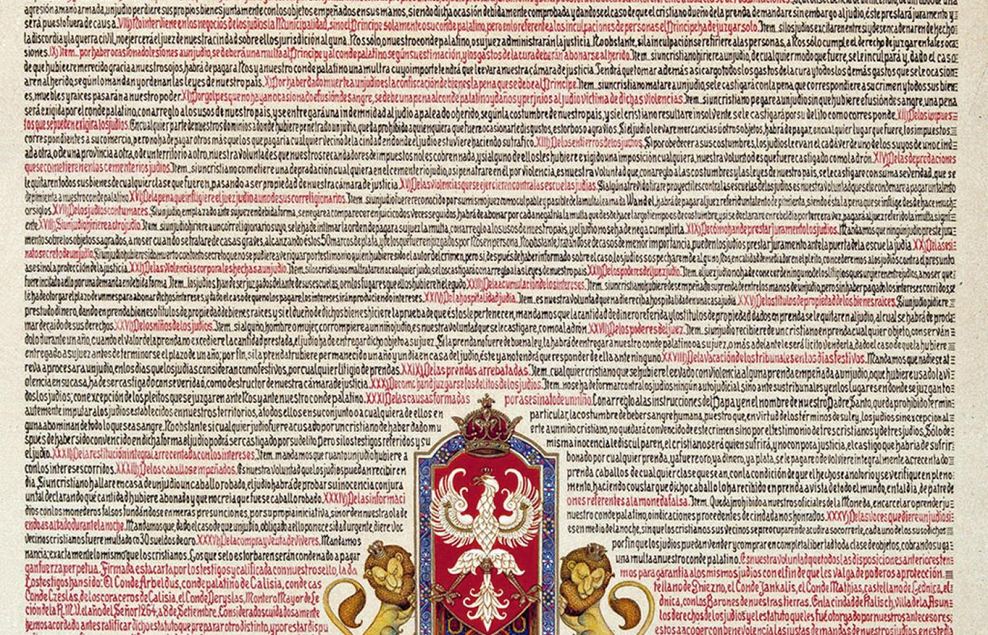 Treść przywileju nadanego Żydom przez księcia Bolesława Pobożnego (dziada Kazimierza Wielkiego) w 1264 r.
