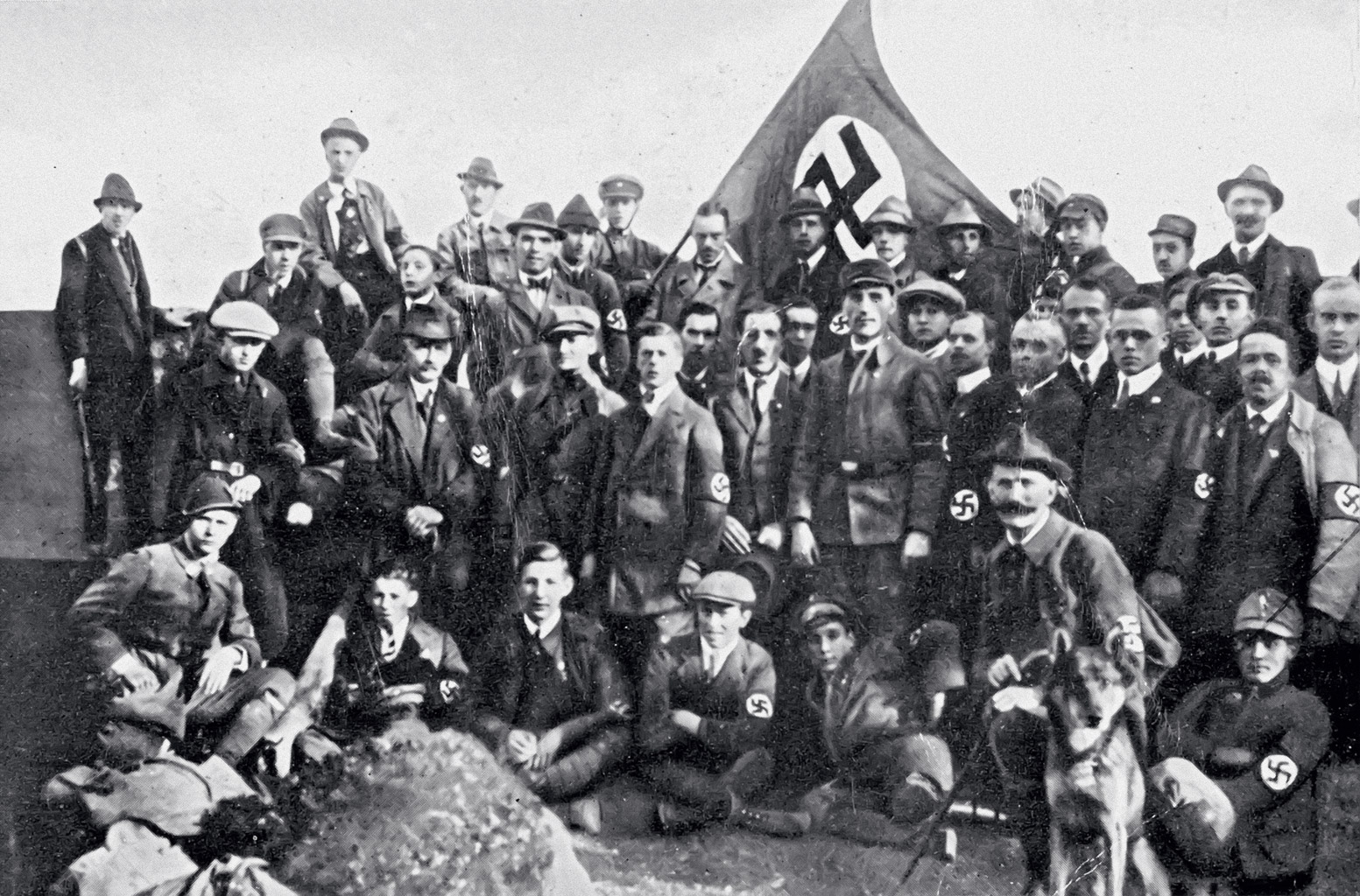 W Republice Weimarskiej. W styczniu 1919 r. powstała w Monachium niewielka, skrajnie nacjonalistyczna Niemiecka Partia Robotnicza. We wrześniu wstąpił do niej Adolf Hitler i wkrótce stał się w niej czołową postacią. Rok później nastąpiła zmiana nazwy na Narodowo-Socjalistyczną Niemiecką Partię Robotniczą (w niemieckim skrócie NSDAP), a w czerwcu 1921 r. Hitler został przewodniczącym ugrupowania; wprowadzono na wszystkich szczeblach zasadę jednoosobowego wodzostwa. Wkrótce powstał Oddział Szturmowy NSDAP – SA, bojówka zwalczająca przeciwników politycznych. NSDAP działała niemal wyłącznie w Bawarii, a ze względu na stosowanie przez nią przemocy fizycznej na wielu innych obszarach Niemiec została zakazana.