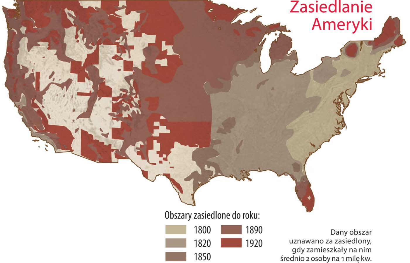 Po upływie trzech lat ziemia jest uprawiona, lasy ustępują pod siekierą i pługiem, log cabin przemienia się w farm house (dom farmerski), otoczony sąsiadami ze wszystkich stron. Jest to najpierw wioska, potem miasteczko, w końcu miasto. W ten sposób zasiedlono i dzielono ziemie kontynentu, dochodząc do Oceanu Spokojnego.