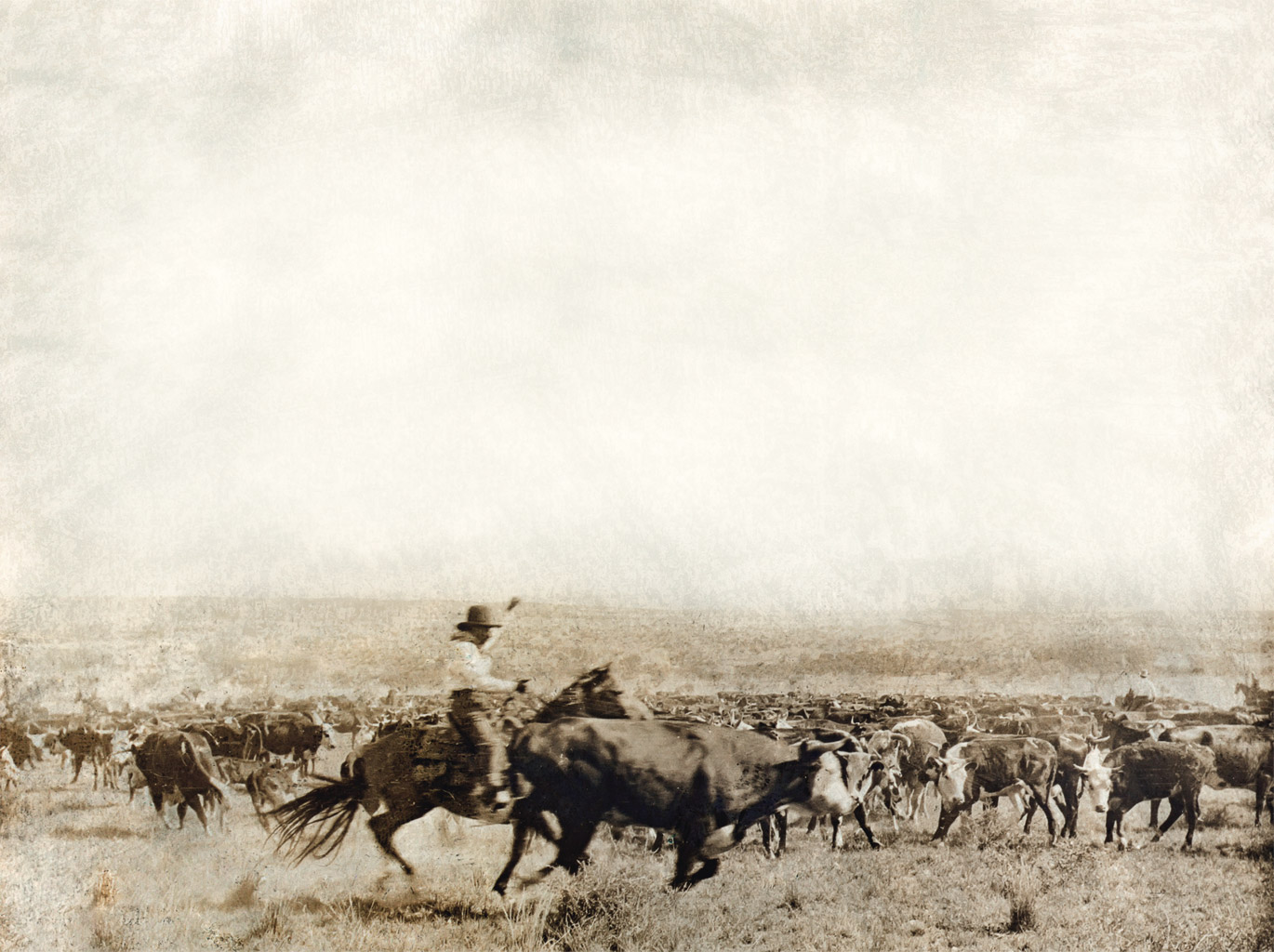 PRZEPĘD STADA. Na stado przypadało z reguły dwunastu kowbojów.
