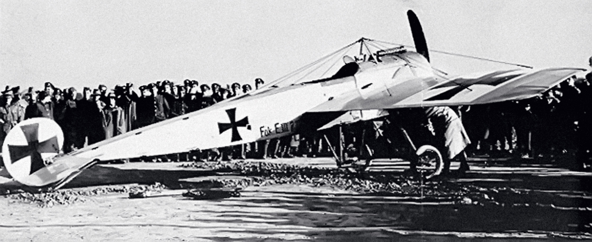 Za pierwszy samolot myśliwski – maszynę przeznaczoną wyłącznie do walki powietrznej – należy uznać francuski Morane-Saulnier N, wyposażony w urządzenie umożliwiające strzelanie z zamontowanego na kadłubie karabinu maszynowego. Próby skonstruowania mechanicznego przerywacza, umożliwiającego strzelanie przez tarczę śmigła, podjęte jeszcze w 1914 r. przez Raymonda Saulniera, zakończyły się niepowodzeniem, zastosowano więc prymitywny odbijacz – dwa kliny stalowe mające zabezpieczyć śmigło przed przestrzeleniem. Urządzenie zamontowano do prób na samolocie Morane-Saulnier L, na którym Roland Garros zestrzelił 1 kwietnia 1915 r. niemiecki samolot obserwacyjny. Dwa kolejne zwycięstwa Garros odniósł 15 i 18 kwietnia; tego samego dnia musiał awaryjnie lądować za liniami wroga. Mimo tego, że spalił samolot, śmigło z odbijaczem się zachowało. Zbadane przez Niemców, stało się inspiracją dla rozwiązania zastosowanego przez Fokkera. Przetestowany odbijacz zamontowano na samolotach typu N, których 49 dostarczono do eskadr.