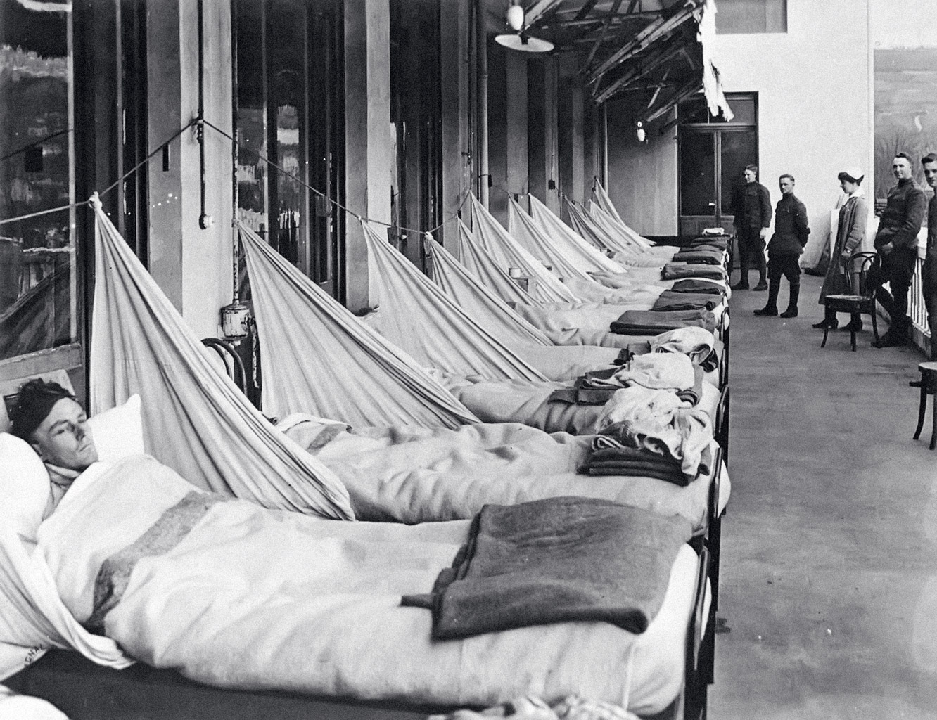 Wirus nie rozróżniał narodowości, a siedzący miesiącami w okopach, zmarznięci i niedożywieni mężczyźni stali się dla niego łatwym celem. W wojsku francuskim śmiertelność okazała się trzykrotnie wyższa niż wśród cywili (na 36 mln Francuzów zmarło we Francji 200 tys. ludności cywilnej), a niemal połowę zgonów w armii amerykańskiej spowodowała grypa (od lipca 1917 do kwietnia 1919 r.