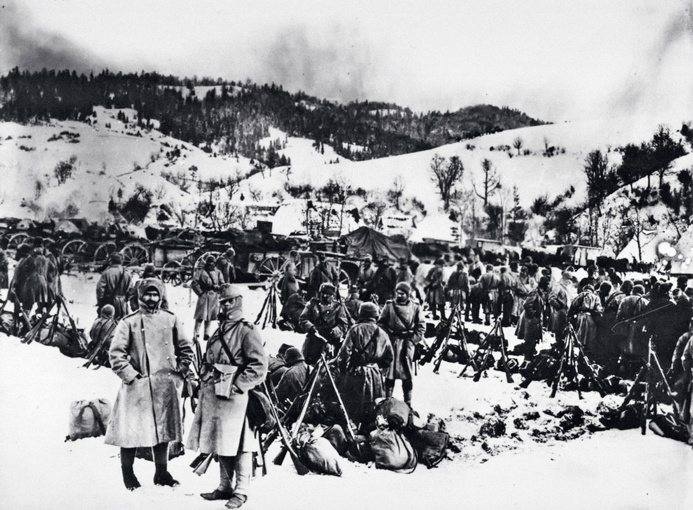 Wielka Wojna to, po ustaleniu stałego frontu, okres niespotykanej przewagi obrony nad atakiem. Pozycje obronne charakteryzowały się ciągłością, głębokością, dostosowaniem do terenu i dużym (z czasem rosnącym) nasyceniem środkami ogniowymi: bronią maszynową, działami piechoty i moździerzami, dla których starannie przygotowywano plan ognia.