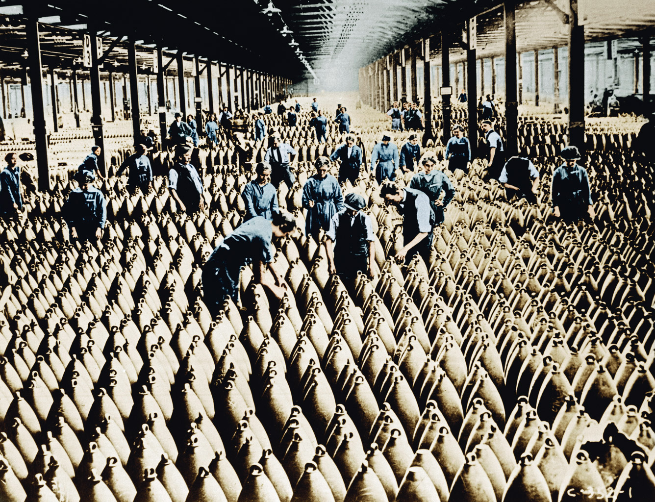 Z zapasów materiałowych najszybciej wyczerpywała się amunicja artyleryjska. Tylko podczas jednego dnia bitwy nad Marną zużyto jej tyle, ile podczas całej wojny niemiecko-francuskiej z lat 1870–71. Już jesienią 1914 r. armie walczące musiały wprowadzić dzienne limity jej użycia, z których dowódcy byli skrupulatnie rozliczani. Szybko należało zwiększyć jej produkcję. Ale nawet na początku 1915 r. część niemieckich zakładów tej branży (40 proc. znajdowało się w prywatnych rękach) wzdrygała się przed zwiększeniem mocy produkcyjnych, obawiając się, że wojna wkrótce się skończy, a poczynione inwestycje się nie zwrócą. Rozwiązaniem stawała się z czasem nacjonalizacja zakładów, oczywiście za odszkodowaniem. Amunicję można było także importować z państw neutralnych, głównie z USA. Pociski tej produkcji trafiały m.in. do luf rosyjskich dział.