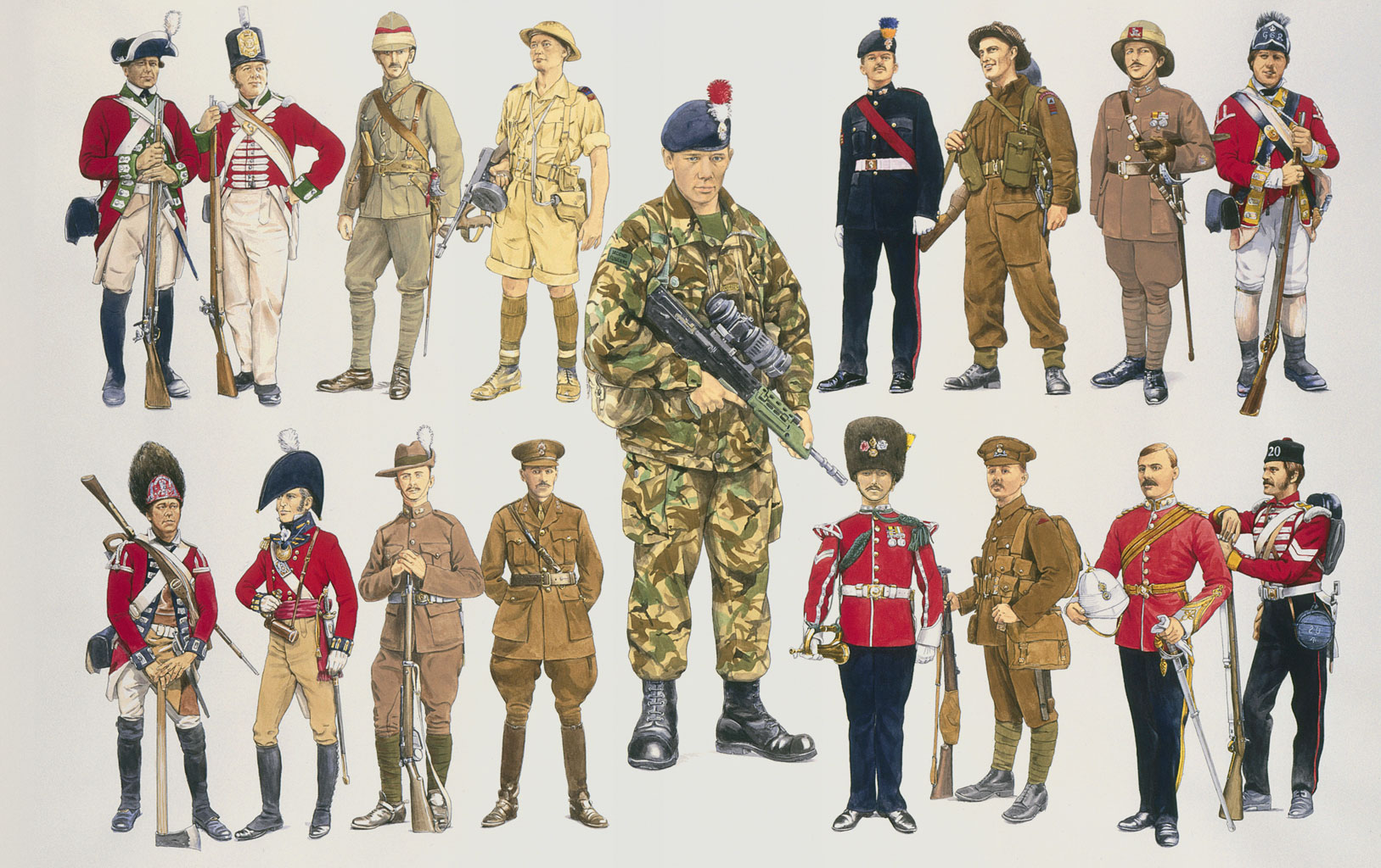 Narodziny systemu pułkowego. Po śmierci Cromwella (1658) Karol II Stuart, syn ściętego Karola I, wylądował w Dover, stanął na czele 30-tys. armii generała Moncka i przejął władzę w Anglii w zasadzie bez rozlewu krwi. Tyle tylko, że tak wielu żołnierzy król nie potrzebował, a parlament nie zamierzał za nich płacić. Po negocjacjach zgodzono się na utrzymywanie czterech, stacjonujących w Londynie, pułków – dwóch kawalerii: Królewskiego Pułku Gwardii Konnej (King’s Regiment of Horse Guard) i Królewskiego Pułku Konnego (King’s Regiment of Horse) oraz dwóch pieszych: 1 Pułku Gwardii Pieszej (1st Regiment of Foot Guard) i Gwardii Coldstreamskiej (Coldstream Guards), ponadto dwudziestu ośmiu różnej wielkości garnizonów na Wyspach; małe jednostki rozmieszczone w koloniach (Ameryka Północna, Indie Zachodnie) miały być prawie w całości finansowane przez kolonistów. Był to początek systemu pułkowego, który odróżniał armię brytyjską od wszystkich innych na świecie. Podlegał on różnym zmianom i miał swoje dziwactwa, jednak zapewniał siłę moralną i zwartość. Początkowo pułki były formowane przez pułkowników i od ich nazwisk brały swoje nazwy. Część z nich rozformowywano, gdy kończyła się wojna, inne trwały.