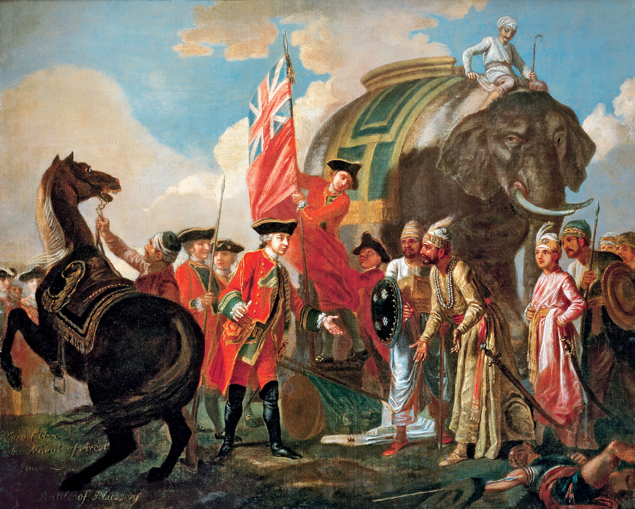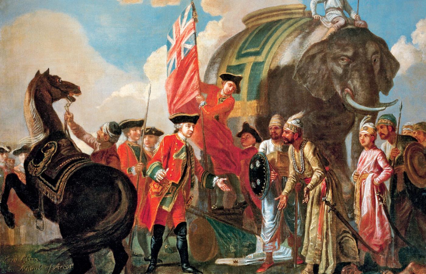 Odwaga i przekupstwo. Pod Plassey w 1757 r. stanęły naprzeciw siebie armie Kompanii Wschodnioindyjskiej (wzmocnione jednym regularnym pułkiem brytyjskim) i nababa Bengalu. Korporacja wystawiła 3 tys. żołnierzy (1 tys. Brytyjczyków), a nabab 50 tys. Bengalski władca ruszył do bitwy jak na paradę, na słoniu, w pięknym palankinie, tyle tylko, że część jego armii nie zamierzała walczyć. Od tygodni gen. Clive pracował nad oficerami i rodziną nababa. Ok. 10 tys. żołnierzy bengalskich jednak zaatakowało i było bliskich zwycięstwa. Anglików uratowała artyleria, która najpierw odstrzeliła (w dosłownym sensie) głowę bengalskiego dowódcy prowadzącego atak, a następnie szybkim flankowym ogniem rozbiła kawalerię wroga. I wtedy rozpoczął się przewrót pałacowy, bengalska armia rozproszyła się, Anglicy rozpoczęli marsz ku podbojowi całych Indii.