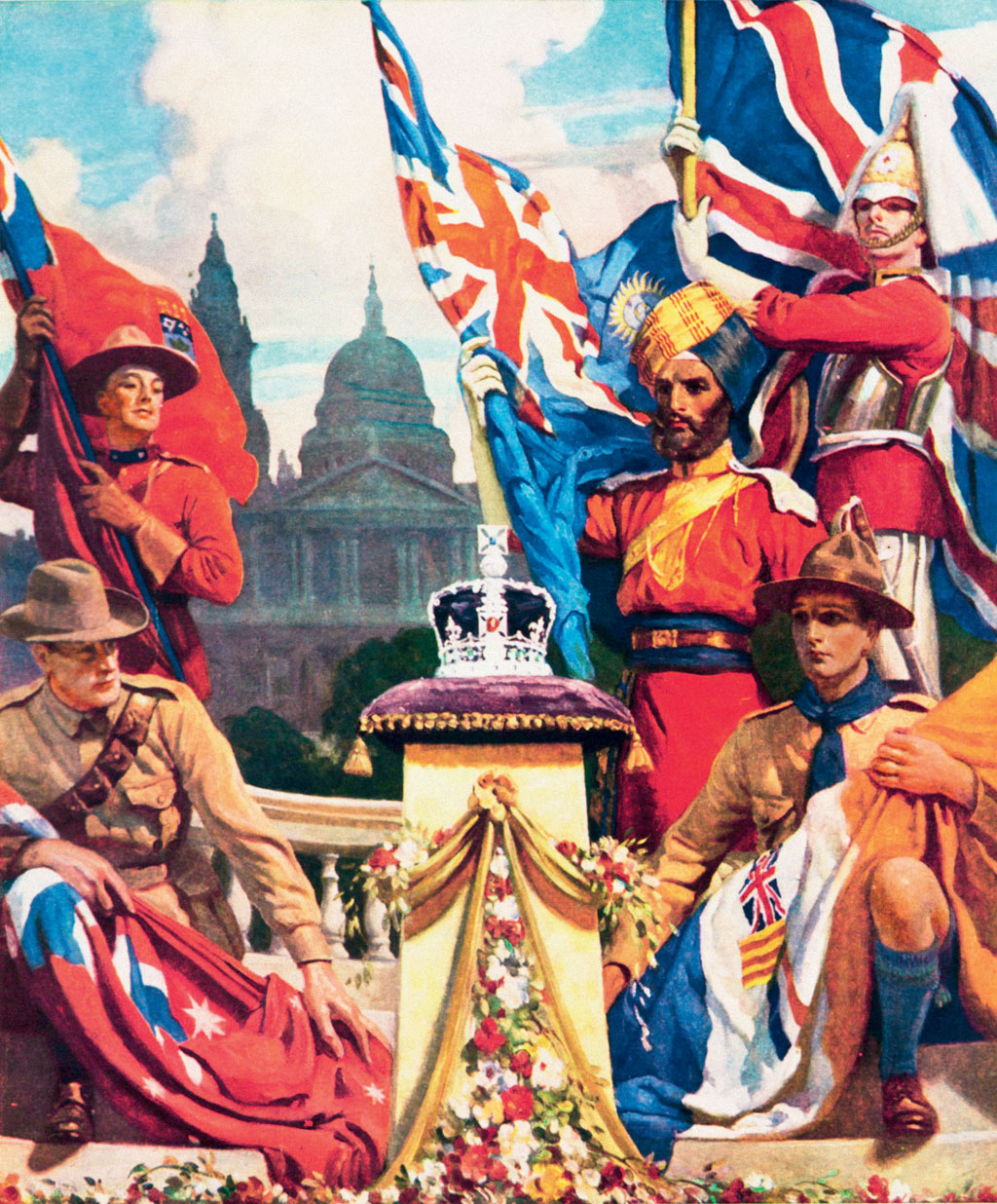 Pierwsza próba wspólnoty. Pierwszą wielką próbę wspólnota przeszła w latach Wielkiej Wojny 1914–18. Jedna trzecia zmobilizowanych sił brytyjskich to wojska z dominiów i kolonialne. W przypadku Nowej Zelandii na front wysłano prawie jedną dziesiątą ludności.