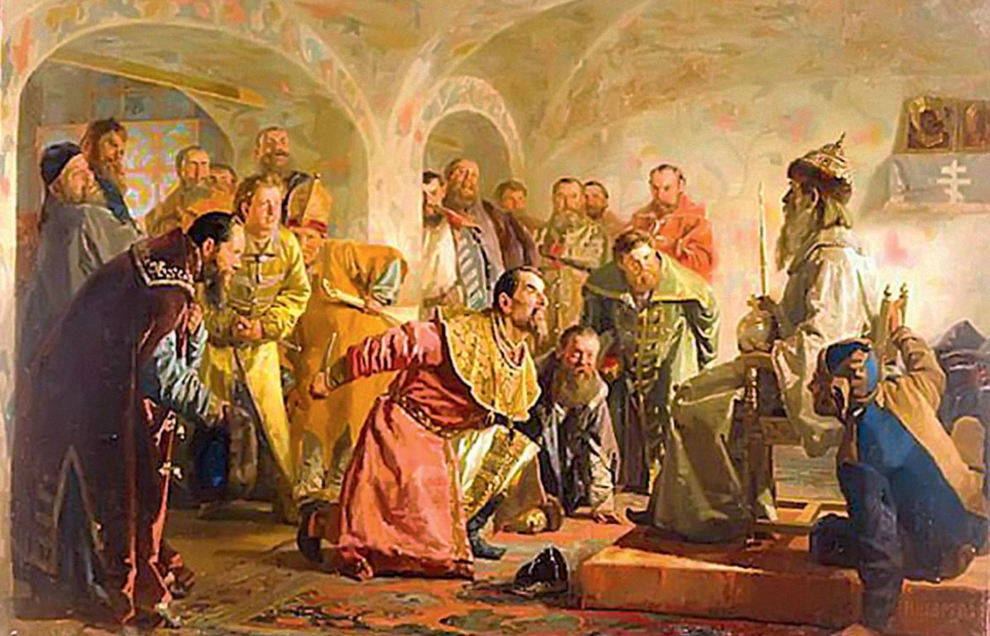 Iwan IV Groźny (1530–84) został ogłoszony wielkim księciem moskiewskim jako trzyletnie dziecko, po śmierci swego ojca ks. Wasyla III, który zakończył dwuwiekowe zbieranie ziem ruskich. Początkowo rządy regencyjne sprawowała jego matka Helena Glińska, zwalczając spisek swego stryja Michała, a także opozycję bojarską kierowaną przez braci zmarłego Wasyla III – książąt Andrieja Starickiego i Jurija Dmitrowskiego. W 1538 r., po nagłej śmierci regentki, władza przechodziła w ręce rodów bojarskich – Szujskich, Bielskich i znowu Szujskich, pogrążających w okrutnej walce o władzę całe państwo i niedbających o małego księcia.