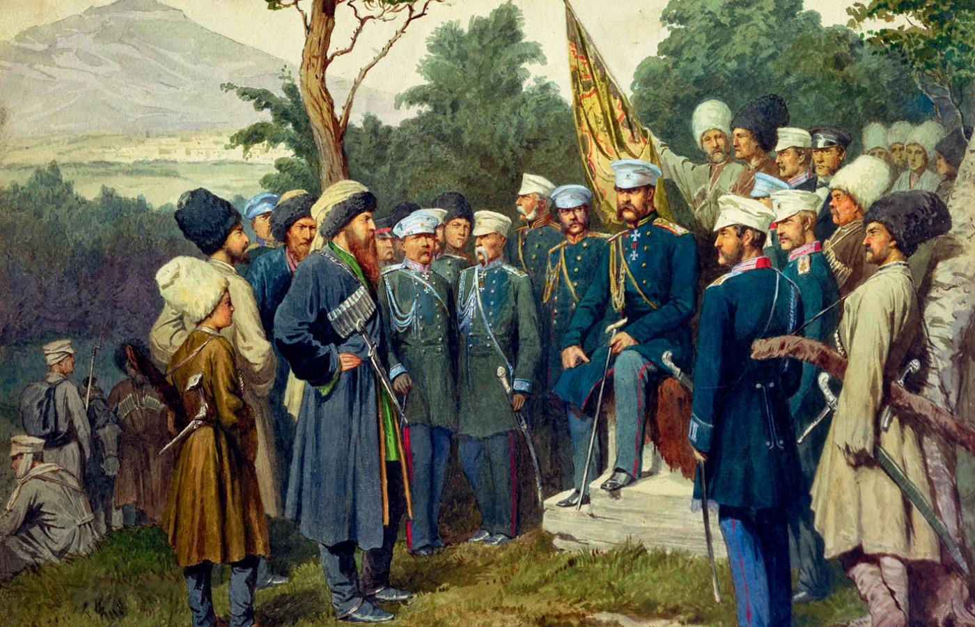 Podbój Kaukazu. Na początek Gruzja. Podbój Kaukazu przez Rosję odbywał się etapami od końca XVIII do połowy XIX w. W tym górzystym regionie żyły obok siebie różne narody wyznające różne religie. Północny Kaukaz zamieszkiwały plemiona muzułmańskie, a obok nich żyli chrześcijanie – Gruzini i Ormianie. Kaukaz sąsiadował z najeżdżającymi te ziemie cesarstwem otomańskim i Persją. Miejscowi chrześcijanie szukali więc ochrony w silnym państwie chrześcijańskim, którym w tym regionie była Rosja. W 1783 r. zawarła ona porozumienie z władcą Królestwa Wschodniej Gruzji Herakliuszem II. W zamian za uznanie zwierzchnictwa silnego protektora państewko to miało otrzymać autonomię w granicach Cesarstwa Rosyjskiego. Warunki traktatu nie zostały dotrzymane, w 1801 r. car Paweł I przekształcił królestwo w gubernię gruzińską. W ciągu kilku lat poddały się inne księstwa gruzińskie: Imeretia, Mingrelia i Guria.