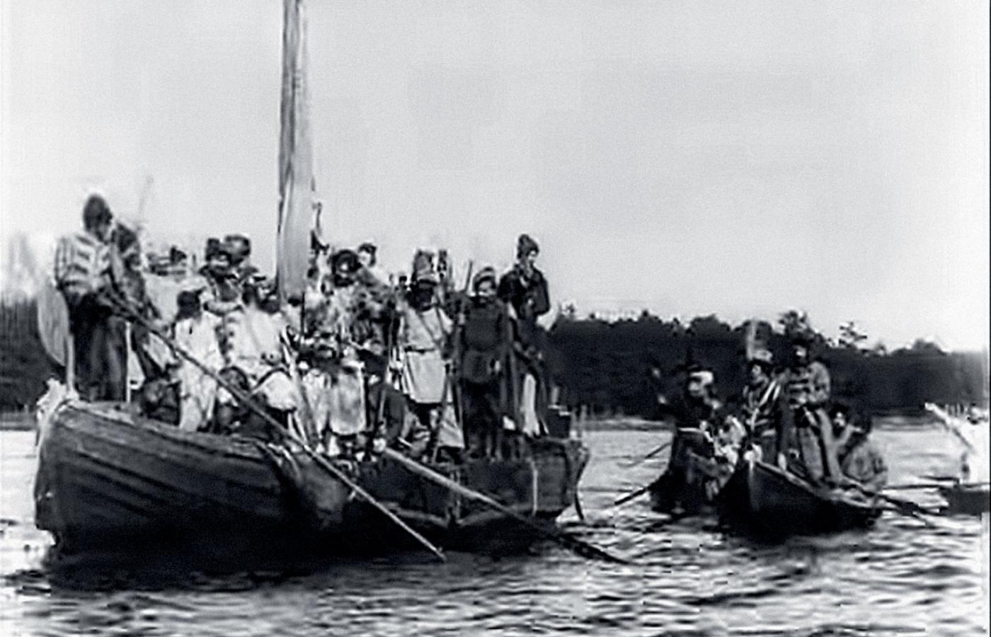 Kino przedrewolucyjne. Tematy historyczne pojawiły się więc już w pierwszych latach istnienia kina rosyjskiego. Realizowane były tak, jak nakazywała estetyka kina jarmarcznego, metodą tableau – żywych obrazów: kilkunastu, potem nawet kilkudziesięciu kadrów, za których pomocą przedstawiano wybrane, inscenizowane na sposób teatralny sceny o wydarzeniach z przeszłości. Tak wyglądały „Bojar Orsza” (1909) Piotra Czardynina, „Wańka-klucznik” (1909), „Rosyjskie wesele z XVIII w.” (1909), „Wołga i Sybir” (1909), „Mazepa” (1909) – wszystkie cztery w reżyserii Wasilija Gonczarowa (ostatni oparty na motywach poematu Aleksandra Puszkina, ale warto dodać, że w 1913 r.