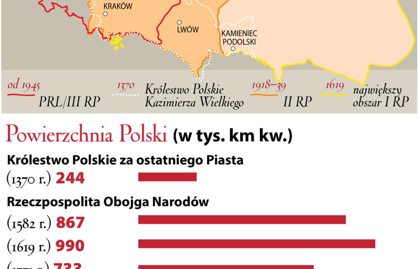 5 listopada 1370, śmierć Kazimierza Wielkiego. Za panowania ostatniego Piasta (który od 1346 r. zaczął używać tytułu pana i dziedzica Rusi) Królestwo Polskie powiększyło się na wschodzie o ziemię sanocką i przemyską, Ruś Halicką ze Lwowem i Pokuciem, fragment Podola Litewskiego, ziemię krzemieniecką i księstwo chełmsko-bełskie.