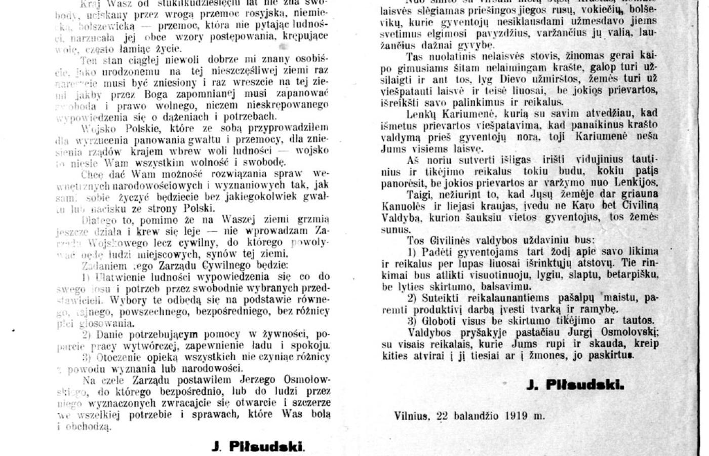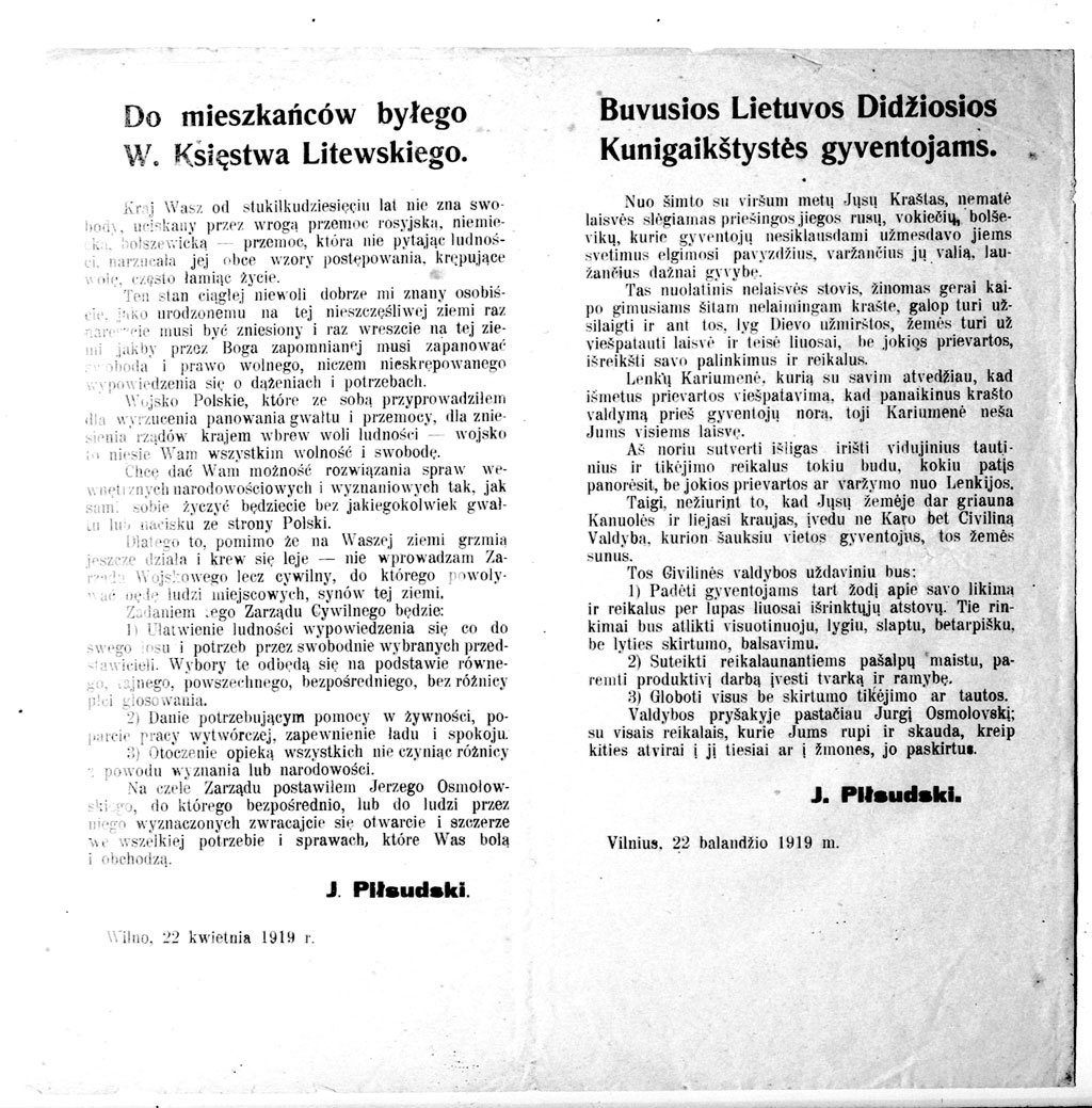 Odezwa Józefa Piłsudskiego z 1919 r.