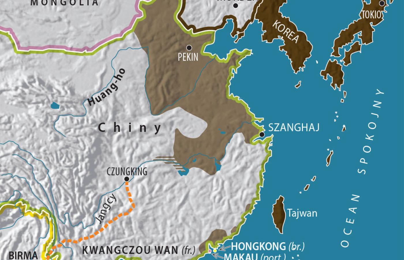 Gwałtowna ekspansja. Historia powszechna zna niewiele przypadków tak gwałtownej ekspansji, jak podjęta przez Japonię w latach 30.–40. XX w. Jeszcze w 1931 r. w imperium japońskim sama Japonia zajmowała 56 proc. powierzchni (prawie 380 z 680 tys. km kw.) z 68 proc. ludności (65 z 90 mln). Przy czym owo imperium zbudowano w dość niedługim okresie – licząc od aneksji wysp Riukiu w 1879 r. Po wojnie z Chinami (1895 r.) przyłączono Tajwan, po wojnie z Rosją (1905 r.) Karafuto (pd. Sachalin) i płw. Kwantung w Mandżurii, w 1910 r. dokonano aneksji Korei, a po I wojnie światowej przejęto – formalnie jako mandat Ligi Narodów – kilka byłych kolonii niemieckich na Pacyfiku, zgrupowanych jako tzw. protektorat Mórz Południowych (jap. Nan’yō).