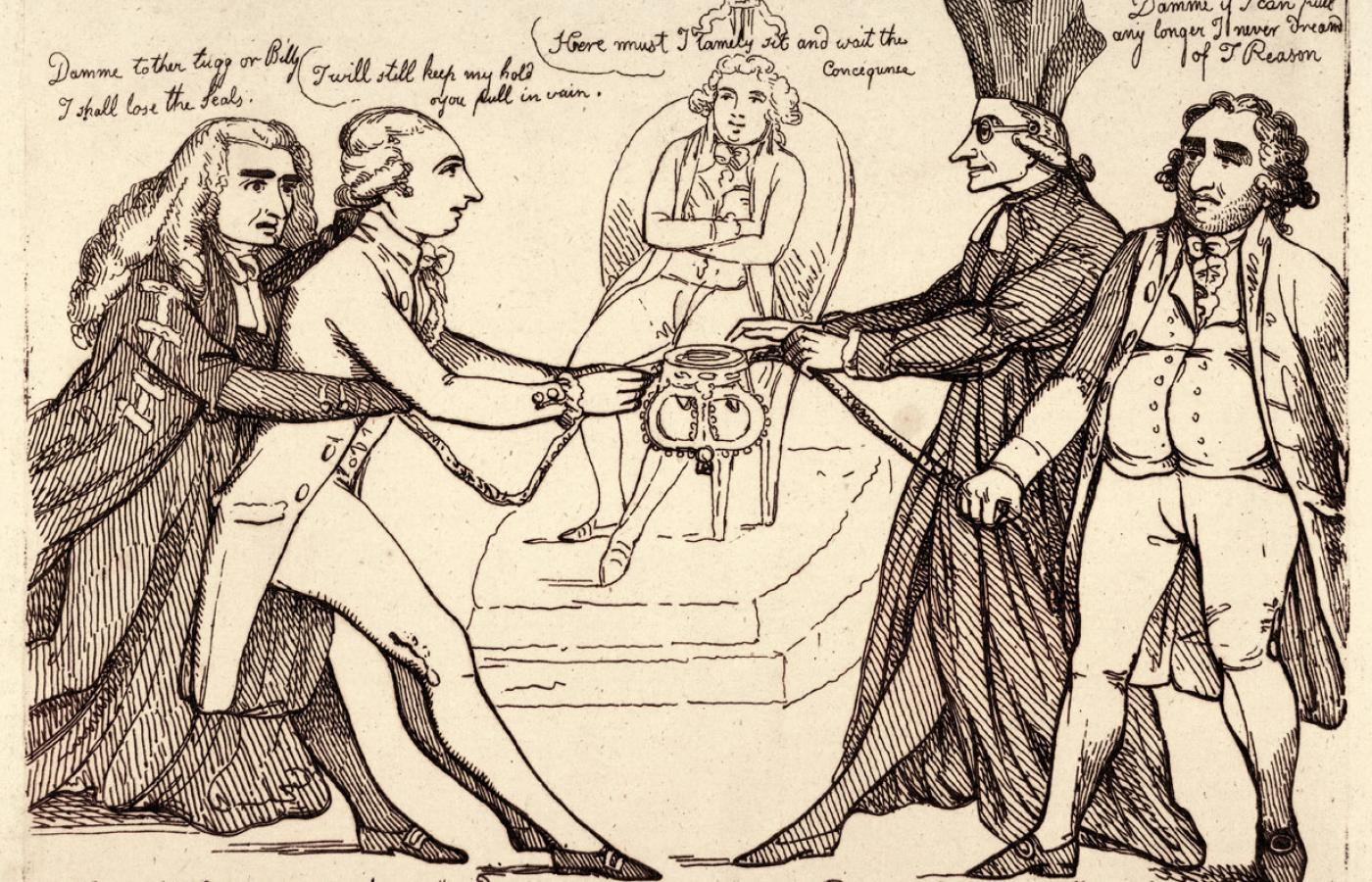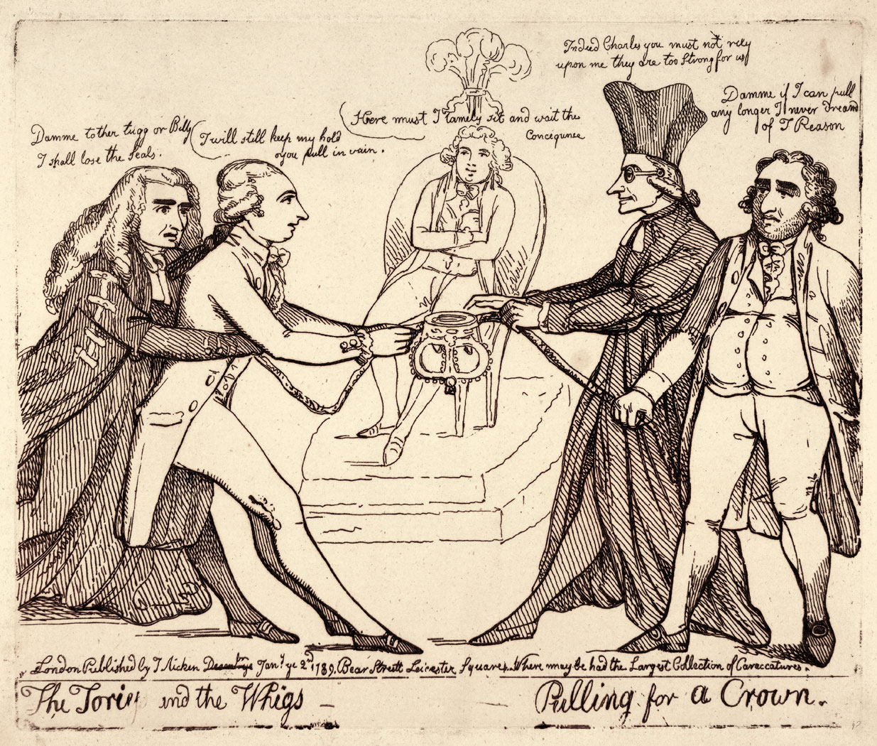 Podczas kryzysu sukcesyjnego za rządów Karola II Stewarta (1630–85) ukształtował się zalążek angielskiego systemu dwupartyjnego. W parlamencie istniały dwa stronnictwa. Pierwsze z nich, przyszli torysi, było związane głównie z Kościołem anglikańskim oraz wielkimi posiadaczami ziemskimi i uważało, że władza królewska pochodzi od Boga, nie należy więc osłabiać jej autorytetu. W opozycji znaleźli się przyszli wigowie, obawiający się królewskiego absolutyzmu i uważający, że źródłem władzy jest umowa społeczna. Początkowo opozycyjnych zwolenników poszerzania kompetencji parlamentu nazywano petycjonerami, ponieważ przedkładali władcy rozliczne uczone petycje. Zwolenników króla, oburzonych ich bezczelnością, nazywano oburzającymi się. Później jednak przyjęły się nazwy torysi i wigowie, pierwotnie zresztą uważane za obraźliwe.