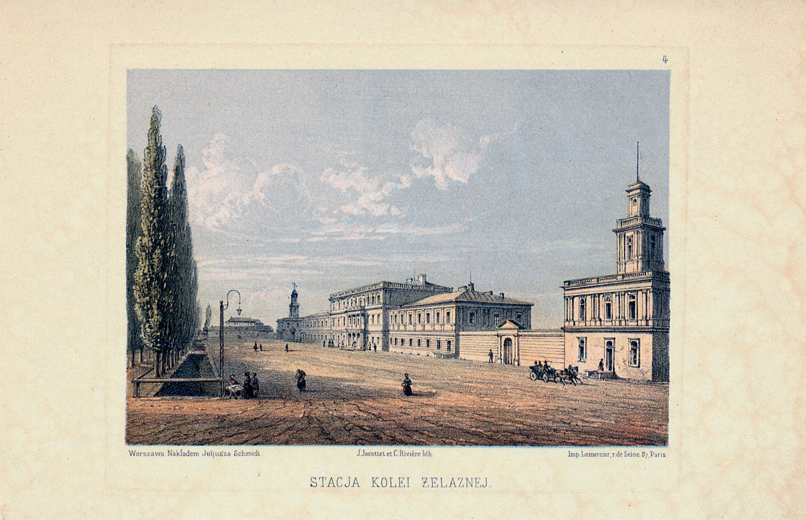 Miejsce na stację końcową. Kiedy w 1844 r. rozpoczynano budowę Bahnhofu, Aleje Jerozolimskie (nazwa w różnych okresach się zmieniała: droga Jerozolimska, ulica Jerozolimska, aleja Jerozolimska) stanowiły, jak na owe czasy, szeroką arterię. Miały prawie 30 m szerokości, po obu stronach były obsadzone podwójnym szpalerem topoli włoskich, między którymi znajdowały się rowy zbierające wodę deszczową. Przy skrzyżowaniu Marszałkowskiej i Alej nie istniały żadne większe zabudowania. Zresztą cały trakt, prowadzący od Nowego Światu w kierunku rogatki Jerozolimskiej już od Marszałkowskiej, biegł przez zielone ogrody, łąki, pastwiska i sady. W takiej okolicy miała teraz dojść do miasta linia kolei parowej zakończona Stacyą Główną przy Marszałkowskiej. Ten plan przypisuje się pułkownikowi Edwardowi Gerstfeldtowi. Na stację końcową wybrano miejsce w pasie posesji między Alejami Jerozolimskimi a przedłużeniem ul. Widok.