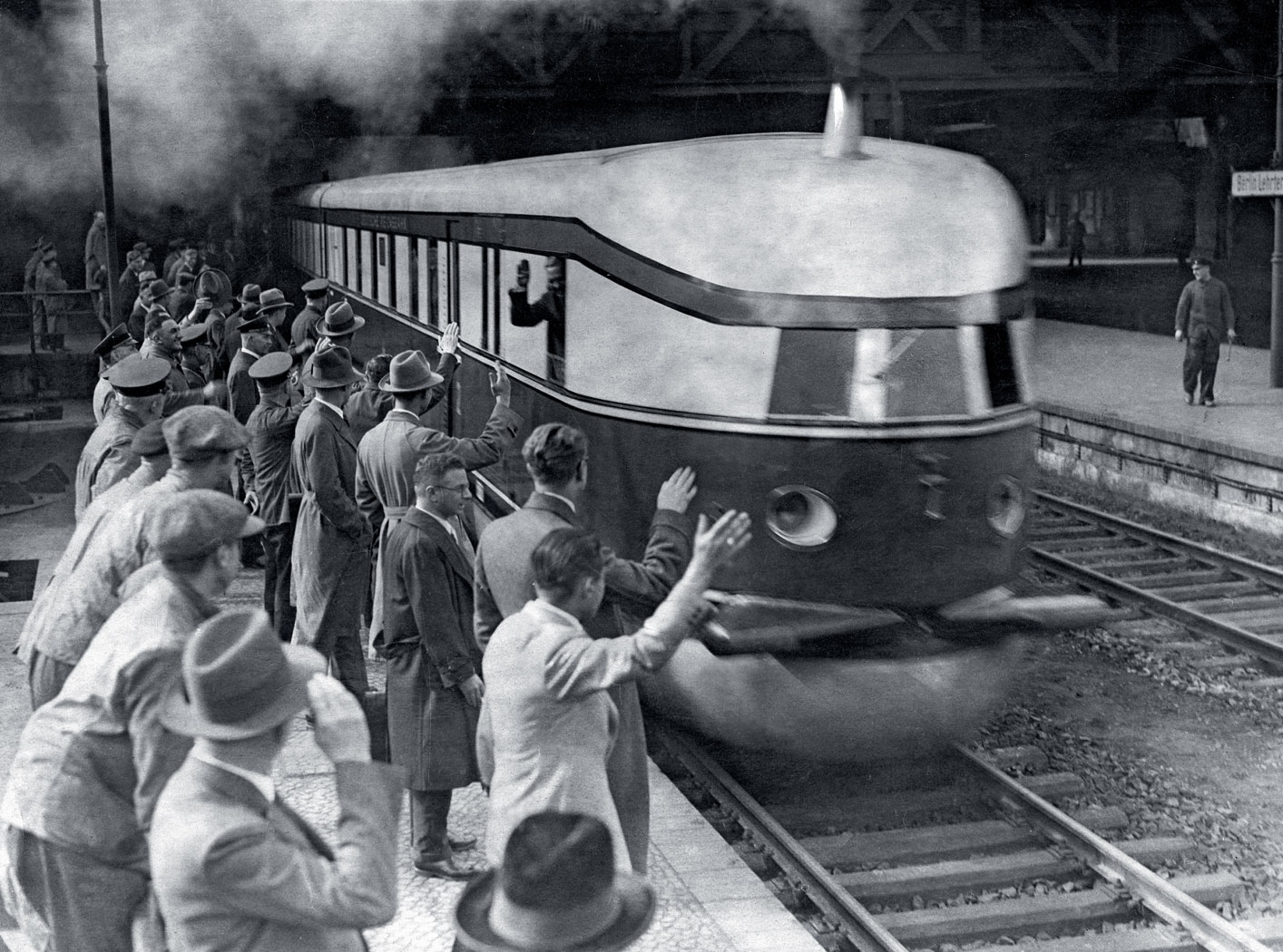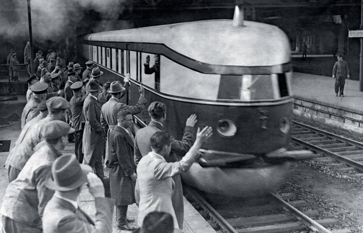 Rekordy bite na parze. Lokomotywy parowe, jakie pojawiły się w Anglii w pierwszej połowie XIX w., rozwijały prędkości rzędu 40–50 km/h, choć nosiły dumne nazwy, np. Rakieta. Wyniki stopniowo poprawiano i w szczególnych przypadkach w Niemczech, Wielkiej Brytanii i Stanach Zjednoczonych lokomotywy pędziły od 160 km/h do 200 km/h. Parowóz z numerem 05-002 kolei niemieckich (DRG) 11 maja 1936 r. osiągnął 200,2 km/h, ciągnąc trzy wagony o łącznej masie 200 ton, a parowóz A4 Mallard kolei brytyjskich (BR) 3 lipca 1938 r. pobił rekord – 202,86 km/h i do dziś pozostaje najszybszą lokomotywą parową świata. Te sukcesy nie miały jednak realnego przełożenia na prędkości eksploatacyjne pociągów, ponieważ wspomniane lokomotywy prowadziły zaledwie 3 lub 4 wagony i to na prostych odcinkach. Można je zatem nazwać eksperymentalnymi. Standardowa prędkość pociągów parowych na początku XX w. wynosiła 120–130 km/h.