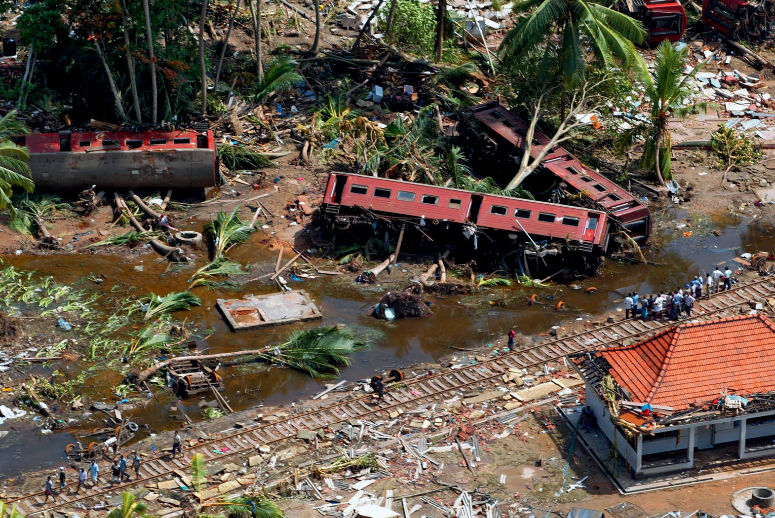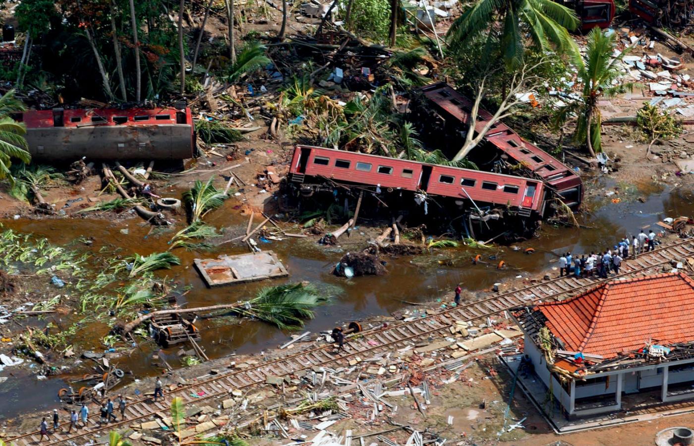 Tsunami na Sri Lance. Kolej pasażerska ma już długą historię, ale najtragiczniejszy wypadek wydarzył się w 2004 r. Nie był on spowodowany wadą techniczną czy ludzkim błędem, ale katastrofą naturalną. Wśród ponad 200 tys. ofiar tsunami są również pasażerowie pociągu jadącego ze stolicy Sri Lanki Kolombo do miejscowości Galle. Do dzisiaj dokładna liczba ofiar nie jest znana, ale szacuje się ją przynajmniej na 1700. Pociągiem, który odjechał przed godz. 7, 26 grudnia 2004 r., z Kolombo, podróżowało ok. 1–1,5 tys. pasażerów z biletami i spora liczba podróżnych na gapę. Niektórzy z nich utopili się wewnątrz wagonów, inni próbowali ratować się, stając na dachu, ale i ci w większości zginęli, gdy fale przewróciły pociąg. Kilka godzin zajęło ustalenie lokalizacji wraku składu. Po czterech latach od tragedii pociąg znów pojechał tą nadmorską trasą, ciągnięty przez tę samą odremontowaną lokomotywę.