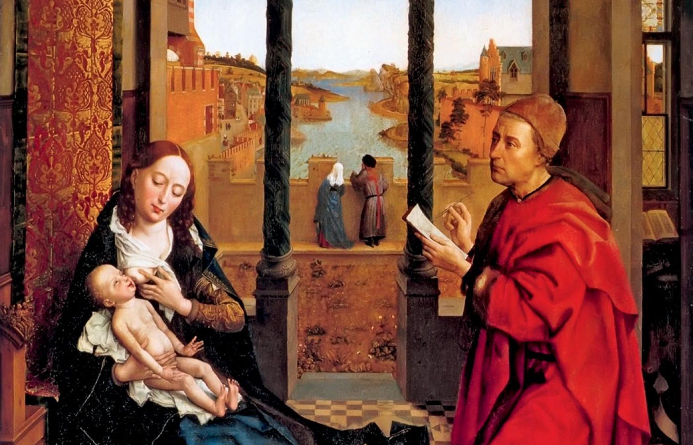 Legenda. Mistrz szkoły niderlandzkiej Rogier van der Weyden (1399/1400–64), działający w Brukseli, nie podpisywał i nie datował swoich obrazów. Użyczył jednak rysów twarzy „Świętemu Łukaszowi rysującemu portret Madonny”. W obrazie, który dzisiaj znajduje się w kolekcji Muzeum Sztuki w Bostonie, malarz półklęcząc, stara się nanieść na papier wizerunek Madonny. Według legendy św. Łukasz Ewangelista był pierwszym chrześcijańskim malarzem. Na deskach stołu, na którym spożyto ostatnią wieczerzę, miał namalować siedemdziesiąt ikon, w tym obraz częstochowskiej „Czarnej Madonny”. Dlatego gildie (cechy) malarzy często obierały go za patrona, zaś kopie obrazu Weydena znaleźć można w petersburskim Ermitażu, Starej Pinakotece w Monachium i Groeningemuseum w Brugii.