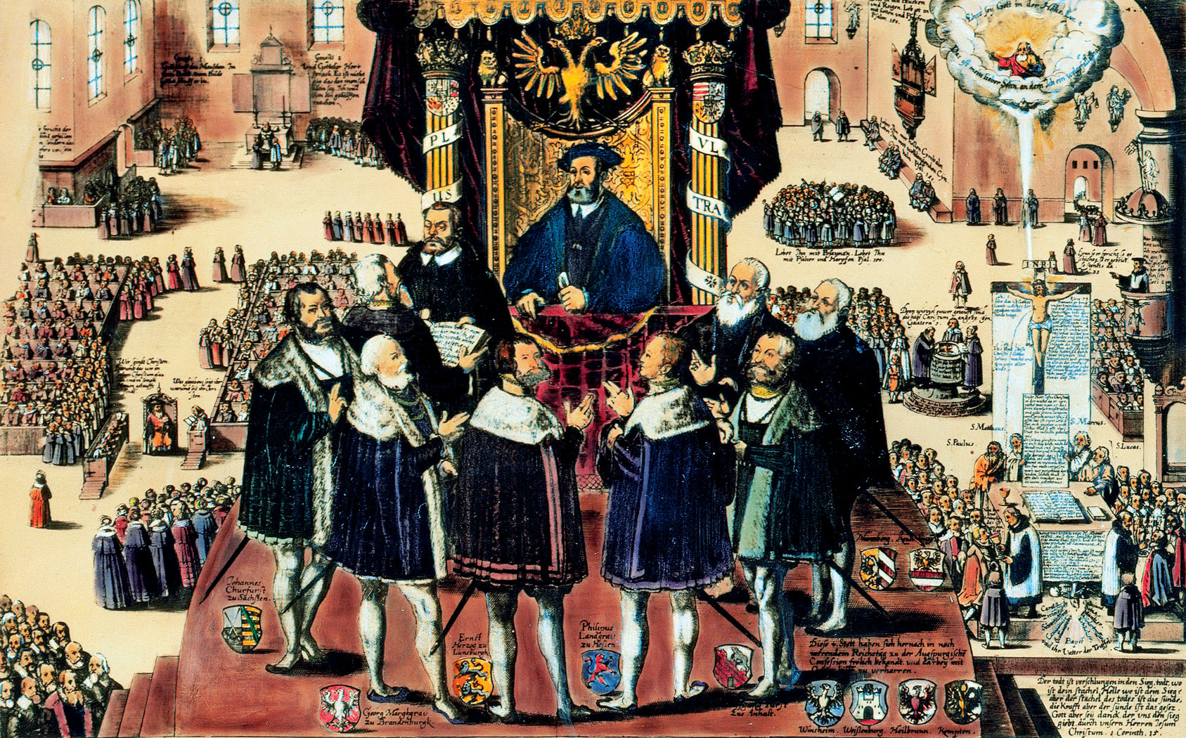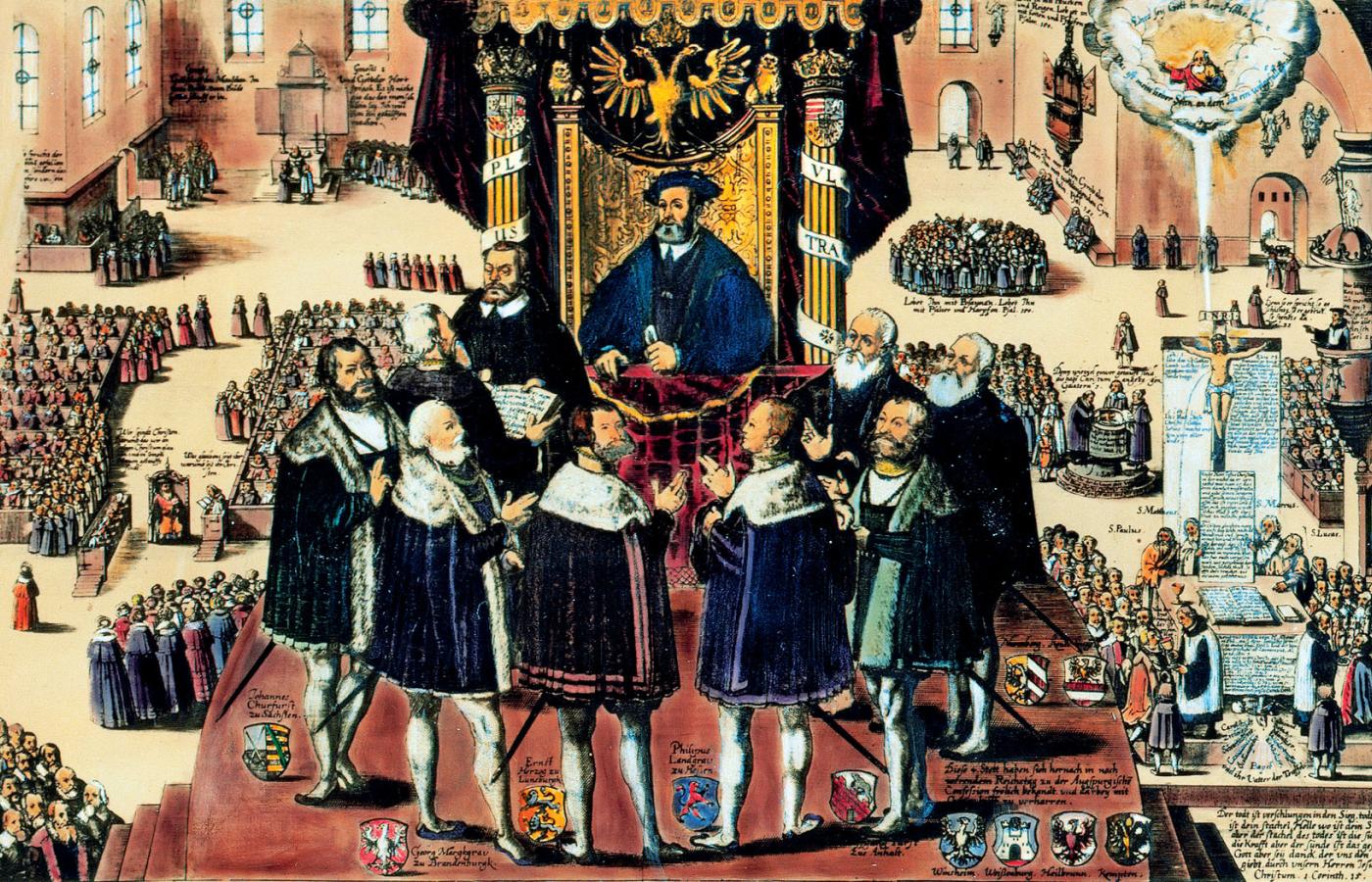Stronnictwo polityczne dla obrony wiary. Droga, która wiodła elektora Jana Fryderyka do klęski, była bardzo długa, a u jej zarania stało wystąpienie Marcina Lutra przeciw papieskim odpustom w 1517 r. W połowie lat 20. stało się jasne, że wystąpienia Lutra w Wittenberdze, Ulrycha Zwingliego w Zurychu i innych kaznodziejów nie są tylko kolejnym starciem w łonie Kościoła. Po stronie „heretyków” opowiedziały się najpierw władze miast: Wittenbergi, Strasburga, Norymbergi. Następnie pierwsi władcy: wielki mistrz Albrecht oraz elektor Saksonii. Na sejmie Rzeszy zwolennicy reform otrzymali w 1526 r. wolną rękę w sprawie egzekucji edyktów antyluterańskich. Próbie ponownego wprowadzenia tych rozporządzeń w życie władcy sprzeciwili się w 1529 r.