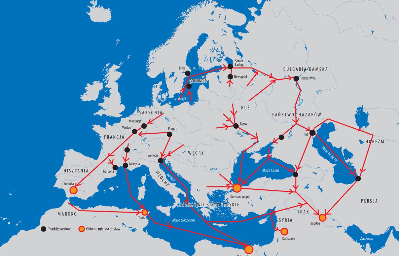 Nieprzypadkowo w wielu współczesnych słownikach terminy: niewolnik i Słowianin, oddziela odstęp ledwie jednego wiersza. Angielskie slave i Slav, hiszpańskie esclave i Eslave to ślady po tym samym procesie, który w średniowiecznej łacinie doprowadził do wyparcia określenia servus (niewolnik) przez sclavus (Słowianin). Skarby srebrnych dirhemów odkrywane od Skandynawii po Morze Czarne są namacalnym świadectwem udziału tych ziem w dalekosiężnej wymianie. Zamieszkiwała je ledwie czwarta część populacji Europy, ale znaleziska IX- i X-wiecznych arabskich monet są tu dwukrotnie liczniejsze niż na pozostałym obszarze.