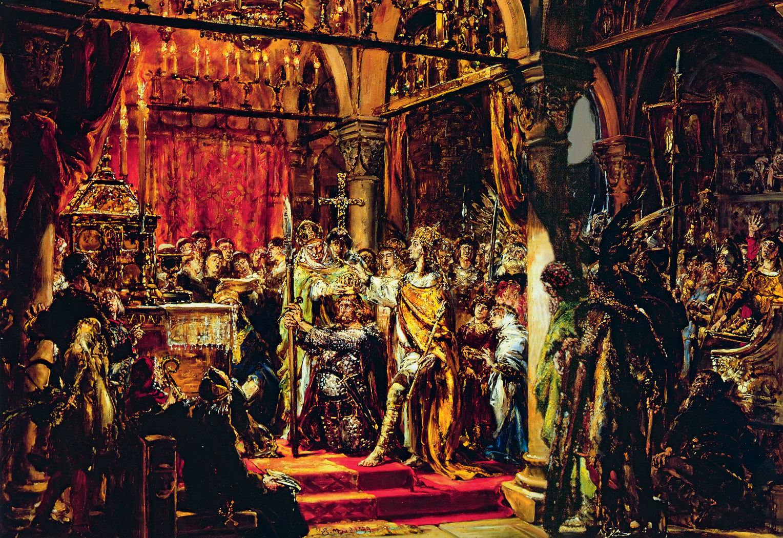 Szkolna wersja narodzin Polski. Polanie, Polska i Polacy to triada pojęć definiujących podstawy naszej tożsamości narodowej, wywodzonej od starodawnego plemienia, które dało dynastię władców piastowskich. Stopniowo podprządkowali oni sobie sąsiednie ludy, które uznały wiodącą rolę Polan w jednoczeniu pokrewnych sobie plemion polskich, zwanych kiedyś lechickimi. Kulminacja budowy państwa terytorialnego nastąpiła pod rządami naszego pierwszego historycznego władcy Mieszka I, który objął władzę zwierzchnią nad terytorium, które nazywał państwem gnieźnieńskim. Własnym nawróceniem w 966 r. dał on przykład poddanym, którzy zgodnie poszli w ślady swojego władcy. Dało to początek chrześcijańskiemu państwu przetrwałemu aż do dzisiaj.