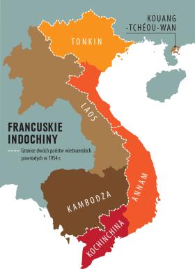Wygnanie Francuzów. Francuzi rozpoczęli podbój Indochin w latach 60. XIX w. W 1887 r. powstał tam Związek Indochiński, na którego czele stał gubernator generalny. Sytuacja ta trwała do 1940 r., kiedy po kapitulacji Francji, na mocy układu zawartego między rządem Vichy a Japonią, do Indochin wkroczyły wojska japońskie. Pod koniec wojny rząd w Tokio podjął decyzję o usunięciu francuskiej administracji z Indochin i proklamowaniu niepodległego państwa wietnamskiego z cesarzem Bao Dai. Zniesienie francuskiego protektoratu ogłosili także król Kambodży Norodom Sihanouk oraz król Laosu Sisavang Vong. Decyzja władz japońskich wywołała oburzenie we Francji. 21 marca 1945 r. rząd paryski w swojej deklaracji potwierdził wolę utrzymania francuskiej obecności w Indochinach i zapowiedział utworzenie Federacji Indochińskiej, która miała mieć swój rząd federalny pod przewodnictwem generalnego gubernatora.