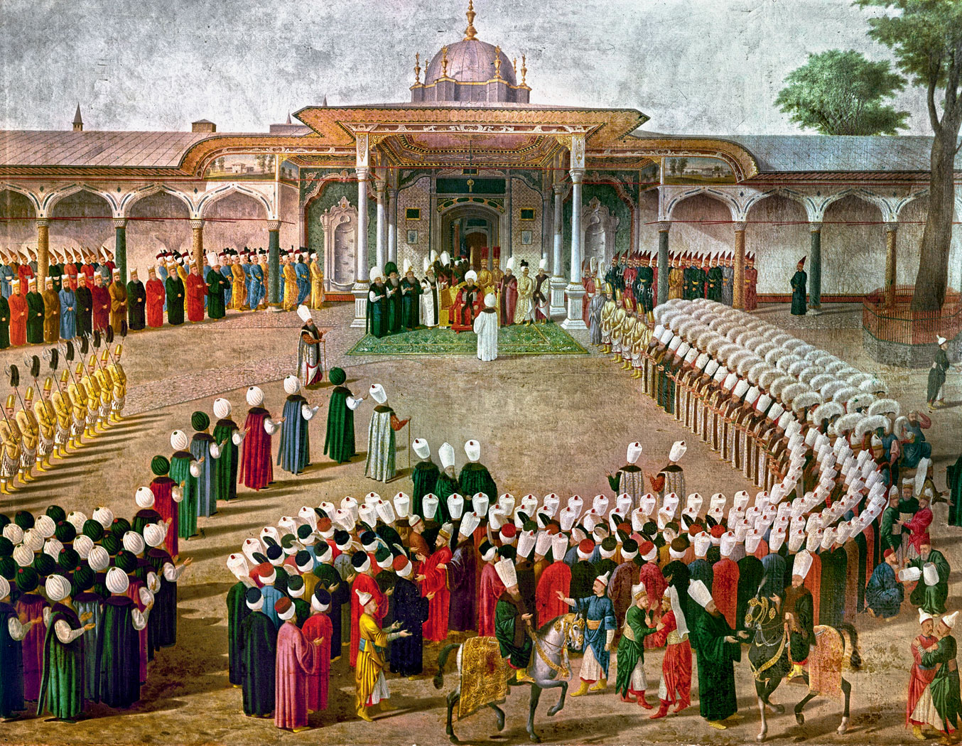 Dynastia i państwo. Imperium Osmańskie było państwem dynastycznym, gdzie sułtan, źródło wszelkiej zwierzchności politycznej, najwyższy rangą dowódca wojskowy i właściciel wszystkich ziem, dzierżył w swoim ręku teoretycznie nieograniczoną władzę. Ukształtowany w XVI w. w okresie największego powodzenia imperium za panowania Sulejmana Wspaniałego obraz potężnego, niemuszącego się z nikim liczyć orientalnego despoty jest jednak mylący. Przede wszystkim sułtan był ograniczony przez szariat (koraniczne prawo kierujące życiem społeczności). Państwo osmańskie, nie można zapominać, było imperium muzułmańskim i nawet jeśli przez cały okres istnienia dużą część społeczeństwa stanowili chrześcijanie i Żydzi, a w niektórych okresach wymogi prawa religijnego traktowano mniej restrykcyjnie, Turcja nigdy nie przestała być krajem podporządkowanym szariatowi interpretowanemu zgodnie z zasadami szkoły hanafickiej (jedna z czterech sunnickich szkół prawa muzułmańskiego).