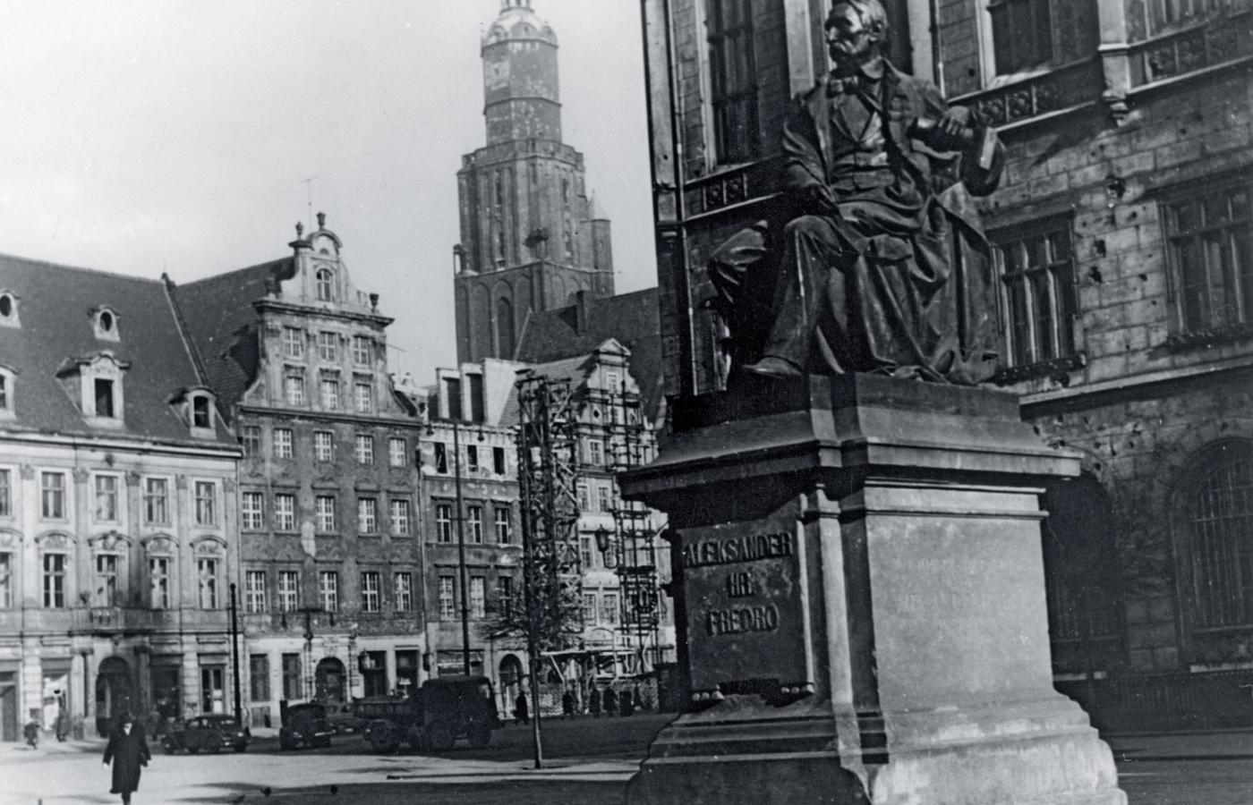Monument Aleksandra Fredry. Dzieło znanego rzeźbiarza i architekta Leonarda Marconiego odsłonięto na placu Akademickim we Lwowie 28 października 1897 r., a uroczystość ta przyciągnęła tysiące mieszkańców. Komediopisarz był związany całe życie z miastem, mieszkał nieopodal w majątku Bieńkowa Wisznia i zmarł we Lwowie. O pozyskanie jego pomnika starał się Wrocław, dokąd trafiła lwowska inteligencja, ale i Poznań chętnie by go widział u siebie. Profesorowie Uniwersytetu Wrocławskiego wystosowali list otwarty do miejskich radnych, domagając się natychmiastowych działań, które pozwoliłyby wyprzedzić w staraniach Poznań. „Pomnik Fredry we Wrocławiu to silny akcent narodowy położony na naszym mieście, to wydarzenie ogólnokulturalne wielkiej wagi i także – doniosły argument polityczny” – napisał w imieniu profesorów Tadeusz Mikulski, znany historyk literatury.