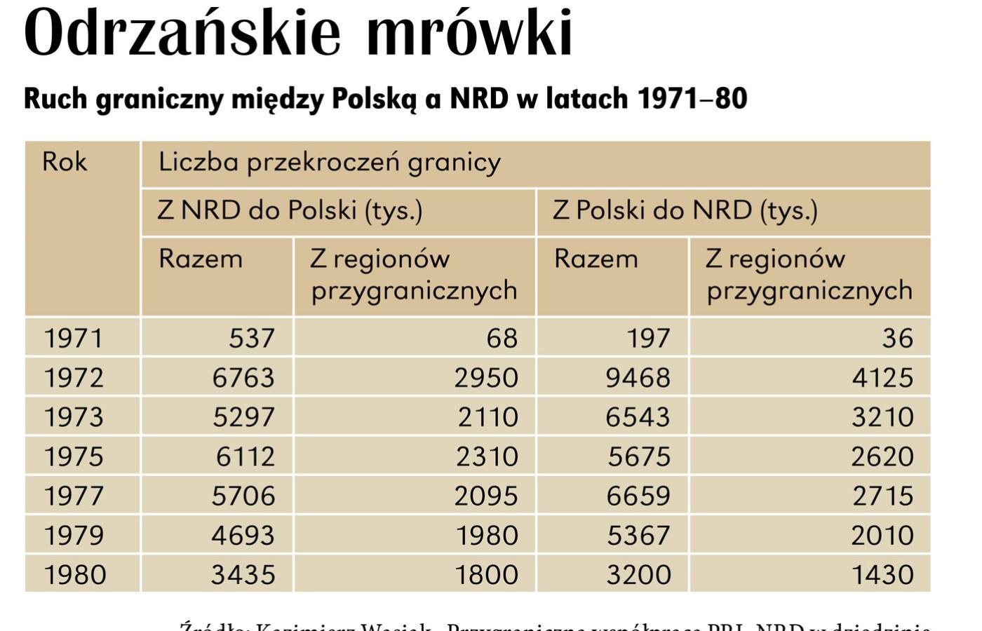 Połączeni zyskiem. Na nowej granicy szybko doszło do specyficznego porozumienia polsko-niemieckiego. Nie chodziło wyłącznie o urzędowe, ale również o pierwsze prywatne kontakty – od wykrzykiwanych poprzez rzekę wyzwisk (np. w Guben/Gubinie) do obopólnie korzystnego przemytu. Zgorzelec, jak donoszono na początku 1947 r., „już dziś wiąże w sobie rozliczne drogi przemytnicze”. W innych podzielonych granicą miastach nie było inaczej. Z Polski szmuglowano przede wszystkim żywność, w drugą stronę wędrowały artykuły przemysłowe, samochody, waluty, złoto itd. Popyt na wywożone do sowieckiej strefy okupacyjnej tłuszcze zwierzęce był tak ogromny, że przywożono je nawet z Lubelszczyzny.