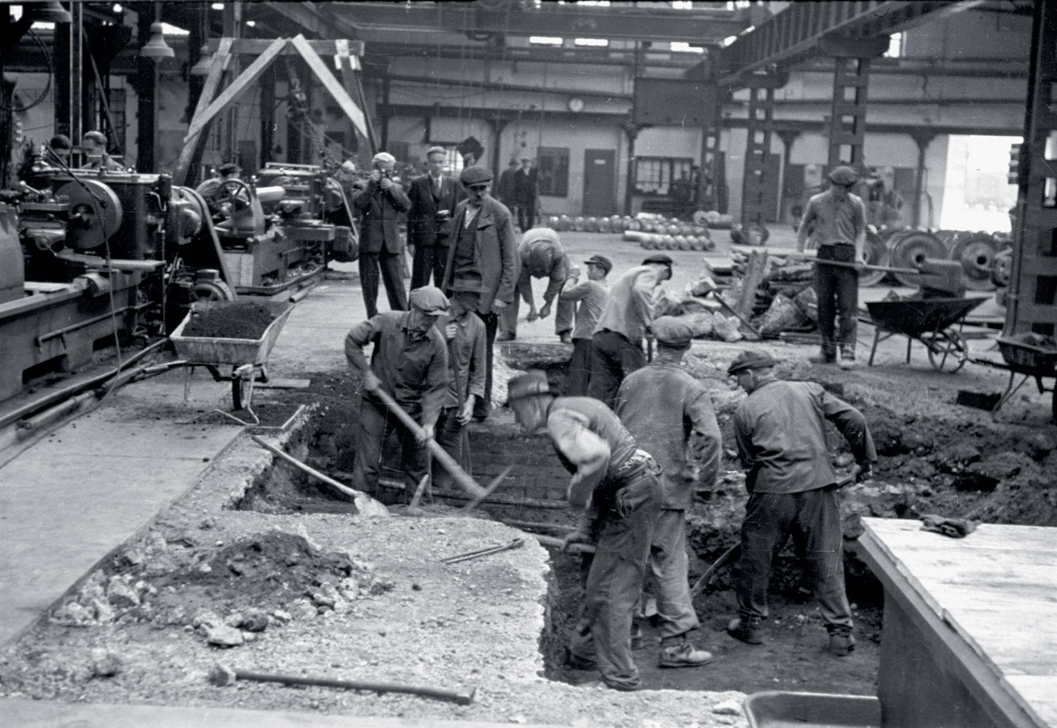 Puste hale w nowych granicach. Gdy wiosną 1945 r. w Europie II wojna światowa dobiegła końca, z polskiego przemysłu zbrojeniowego w praktyce pozostało niewiele. W okresie okupacji niemieckiej przemysł ten, włączony w system gospodarczy Rzeszy, funkcjonował dość efektywnie, ale gdy latem 1944 r. działania wojenne przeniosły się do środkowej Polski, Niemcy rozpoczęli wywózkę wyposażenia dotąd czynnych zakładów. W efekcie na początku 1945 r., gdy front przetoczył się przez resztę kraju, z większości przedwojennych fabryk pozostały tylko puste, zdewastowane hale, natomiast los majątku przejmowanego na tzw. Ziemiach Odzyskanych pozostawał niepewny. Zgodnie bowiem z decyzją Państwowego Komitetu Obrony ZSRR z kwietnia 1945 r., najwyższego organu sprawującego władzę w ZSRR na czas wojny, komendanci wojenni danych obszarów, zarządzający nimi z ramienia Armii Czerwonej, mieli odpowiadać za przekazywanie całego mienia władzom polskim, ale wyłącznie w obszarze granic z 1939 r. Oczywiście, gdy mowa o zachodniej granicy Polski, bo nowa na wschodzie oparta została na Bugu.