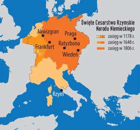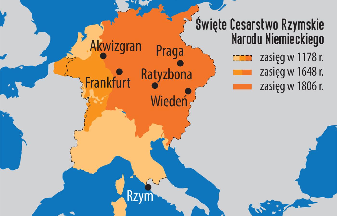 Święte Cesarstwo Rzymskie Narodu Niemieckiego. Dokonana w 962 r. w Rzymie koronacja cesarska Ottona I Wielkiego, pierwszego z niemieckich królów z dynastii Ludolfingów, była drugim z kolei aktem odnowienia bytu nazywanego wówczas po prostu cesarstwem, domyślnie rzymskim (dookreślenie święte zaczęło się pojawiać dopiero w połowie XIII w.). Przeniesienie tego najbardziej prestiżowego z prestiżowych tytułów na Niemców dotyczyło ludzi pochodzących z rozmaitych plemion, mających przynajmniej jedną wspólną cechę: mowę.