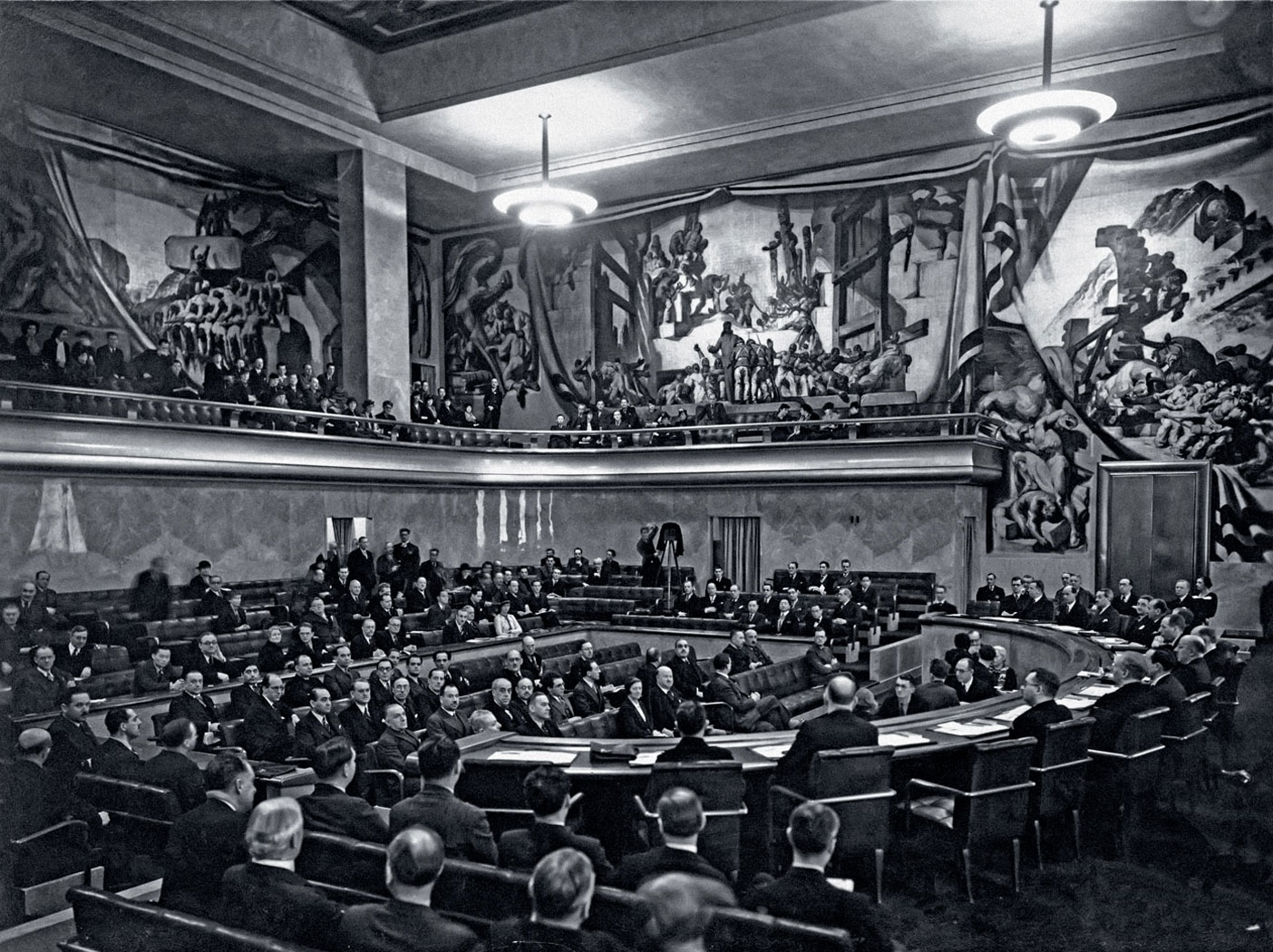 Wizja Thomasa Woodrowa Wilsona. Pierwsza w historii podróż amerykańskiego prezydenta do Europy była pełna symboli. Thomas Woodrow Wilson odbył ją na pokładzie transatlantyku zbudowanego dziesięć lat wcześniej w Szczecinie do obsługi trasy do Nowego Jorku. Patronem jednostki, od momentu jej wodowania pod niemiecką banderą, był George Washington. Zarekwirowany w 1917 r. przez Stany Zjednoczone, przewiózł na front 48 tys. żołnierzy. Gdy 13 grudnia 1918 r. z Wilsonem na pokładzie wpływał do Brestu, eskortowało go 10 amerykańskich pancerników i 28 niszczycieli. Tłum w bretońskich strojach wypełniał ulice miasta udekorowane flagami, wieńcami laurowymi i plakatami z podobizną prezydenta. Wzdłuż trasy przejazdu specjalnego pociągu stały rzesze ludzi – także w środku nocy. Gdy następnego ranka prezydent dotarł do Paryża, powitały go saluty armatnie i kolejne rozentuzjazmowane tłumy na ulicach. Nawet w pokonanych Niemczech i Austrii Wilsona postrzegano w tych grudniowych dniach jako wybawiciela.