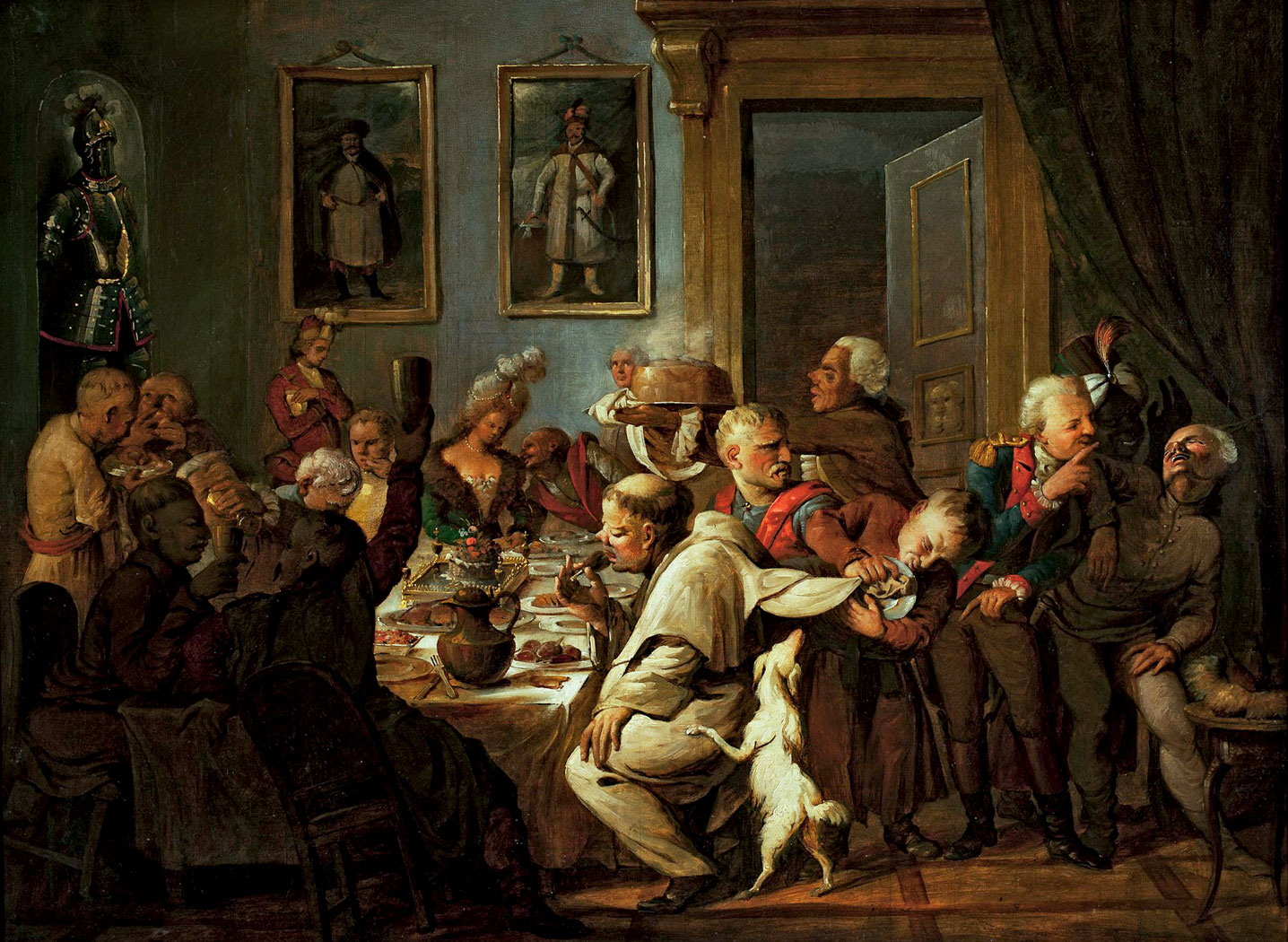 Po sarmacku. W niewielkim dworku w Mereczowszczyźnie jadało się jeszcze po sarmacku. Podawano rosół, barszcz, krupnik, sztukę mięsa, bigos z kwaszonej kapusty i rozmaitych mięs, groch ze słoniną – wylicza tradycyjne potrawy szlacheckich stołów kronikarz obyczajów tamtej epoki Jędrzej Kitowicz. A jeszcze kiełbasy, drób pieczony, prosięta, dziczyzna, wędzonki, kiszki wątrobiane i z ryżem, w poście ryby głównie słodkowodne, przyrządzane na wiele sposobów, a wszystko tak pieprzne i szafranne oraz przepojone smakiem czosnku i cebuli, że cudzoziemcy z trudem byli w stanie tym specjałom sprostać. Coraz częściej jednak, co również odnotowuje Kitowicz, stawała obok tradycyjnego jadła lekka – na francuską modłę – zupa rumiana, a także mięsa podlane esencjonalnym bulionem zamiast tłuszczu, doprawiane do smaku cytryną, octem winnym, ziołami, kaparami, oliwkami.