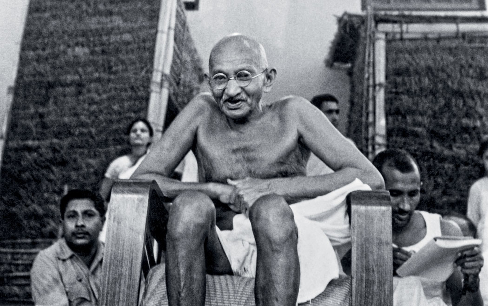 Prawnik ze ślubem czystości. Mohandas Karamćand Gandhi, znany jako Mahatma (z sansk. mahatma – wielki duch), urodził się 2 października 1869 r. w księstwie Porbandar (obecnie miasto w stanie Gudźarat), w rodzinie hindusów z kasty drobnych kupców. Jego ojciec piastował urząd diwana (urzędnika ds. finansów) na dworze lokalnego maharadźi. W wieku trzynastu lat Gandhi został ożeniony ze swoją rówieśniczką Kasturbai, która urodziła mu później dwóch synów. Podstawową edukację odebrał w Indiach, a następnie w latach 1887–90 studiował prawo w Londynie. Przez kolejne trzy lata próbował swoich sił jako adwokat w Indiach, jednak brak sukcesów skłonił go do podpisania kontraktu i wyjazdu do Afryki Południowej. Do 1914 r. pracował w Natalu, a potem w Pretorii. To tam, obserwując sytuację ludności kolorowej i osobiście doświadczając dyskryminacji na tle rasowym, wykształcił swoje poglądy na społeczeństwo, które później propagował w Indiach. Podstawowe pojęcia łączone z jego postacią i działalnością to ahinsa, czyli zaczerpnięta z dźinizmu zasada niekrzywdzenia istot żywych, oraz satjagraha – przywiązanie do prawdy.