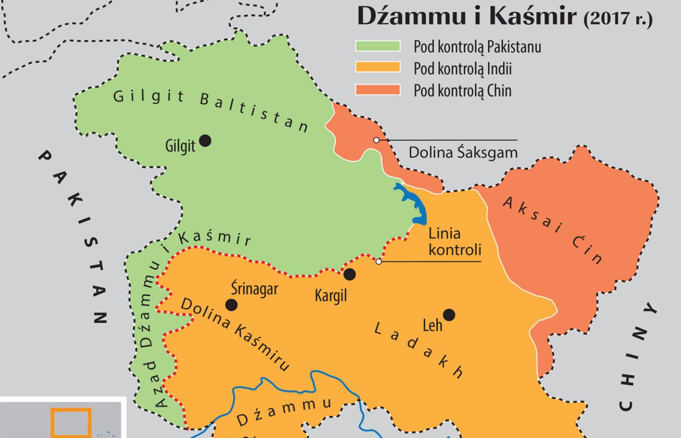 Kaśmirskie wrota. Usytuowanie Kaśmiru sprawia, że nazywa się ten region wrotami do subkontynentu indyjskiego od strony Azji Środkowej i Chin. W okresie kolonialnym księstwo Dźammu i Kaśmir było jednym z 562 tzw. państw książęcych (Princely States) uznających brytyjskie zwierzchnictwo. Po podziale subkontynentu większość z nich dokonała akcesji do Indii lub Pakistanu albo została militarnie do tego zmuszona. Problemem okazało się Dźammu i Kaśmir, na pograniczu indyjsko-pakistańskim, zróżnicowane pod względem wyznaniowym, kulturowym, lingwistycznym i etnicznym, zarządzane przez hinduską dynastię Dogrów. Jej rządy usankcjonował w 1846 r. traktat podpisany przez Brytyjczyków i Gulaba Singha, który został pierwszym władcą z tej dynastii. Singha w ten sposób nagrodzono za zachowanie neutralności podczas wojny brytyjsko-sikhijskiej; Brytyjczycy sprzedali mu zamieszkiwaną przez muzułmańską większość Dolinę Kaśmirską i nadali prawo do władania Dźammu i Kaśmirem.
