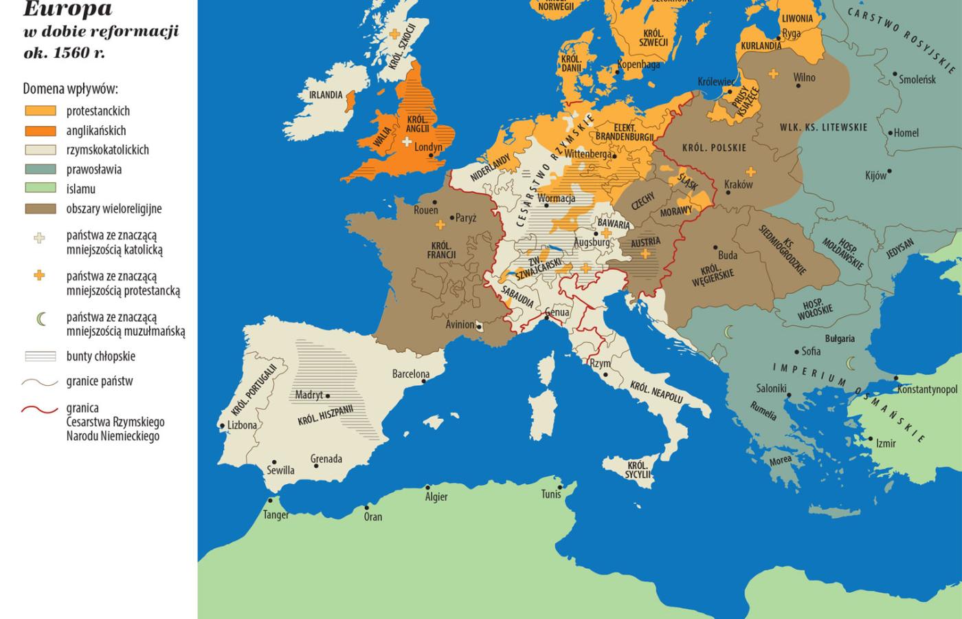 Spoistość katolickiego świata nie była już silna. Wprawdzie prestiż Kościoła nadal był ogromny, mimo eskapad rozbuchanego papieża Aleksandra VI i jego bastardów, ale był to prestiż raczej zewnętrzny i magiczny, jak cała religijność ówczesnego świata, a nie moralny i duchowy. Rzym zresztą wprawdzie tępił herezję, ale nie czuł się zobowiązany do narzucania jednej centralnej teologii. Od dawna różne szkoły teologiczne i zakony – jak choćby franciszkanie i dominikanie – toczyły ze sobą zażarte spory, które pochłonęły niejedną ofiarę.