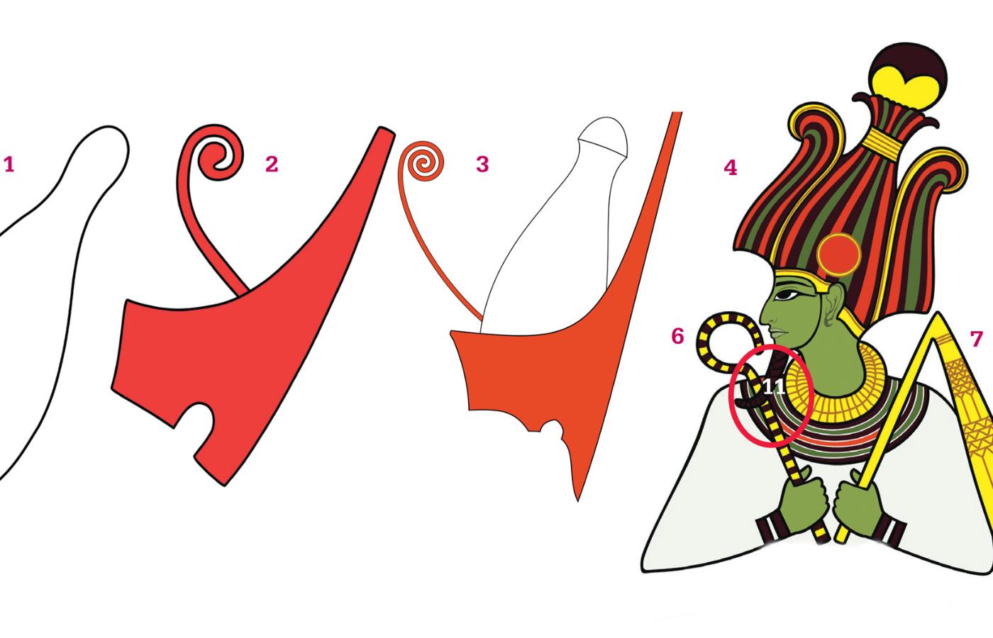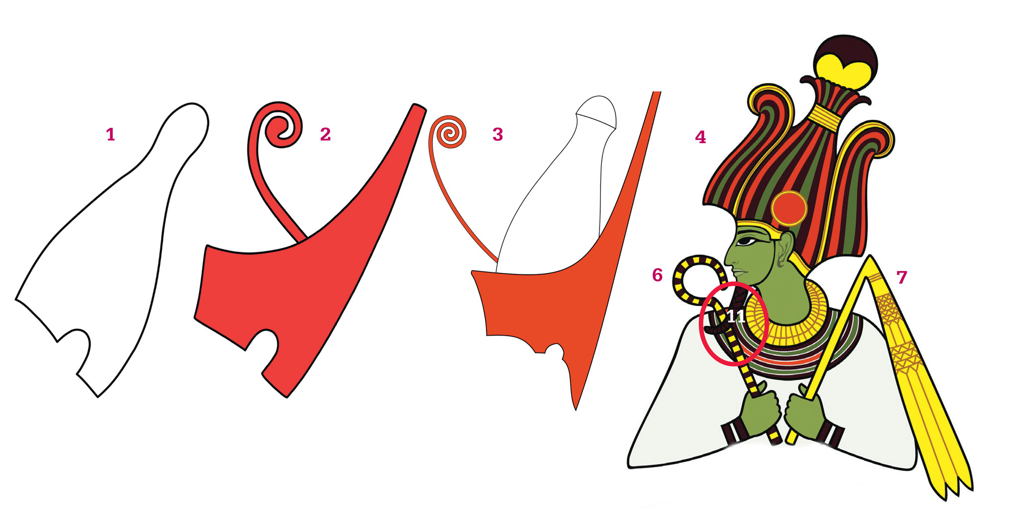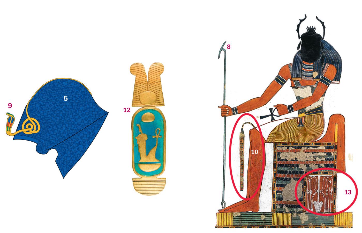 Ponieważ w Egipcie tekst i obraz pozostawały w ścisłej relacji, niemal wszystkie regalia mają swoje znaki hieroglificzne, często oznaczające nie tylko sam przedmiot, ale i niesione przez niego znaczenie.