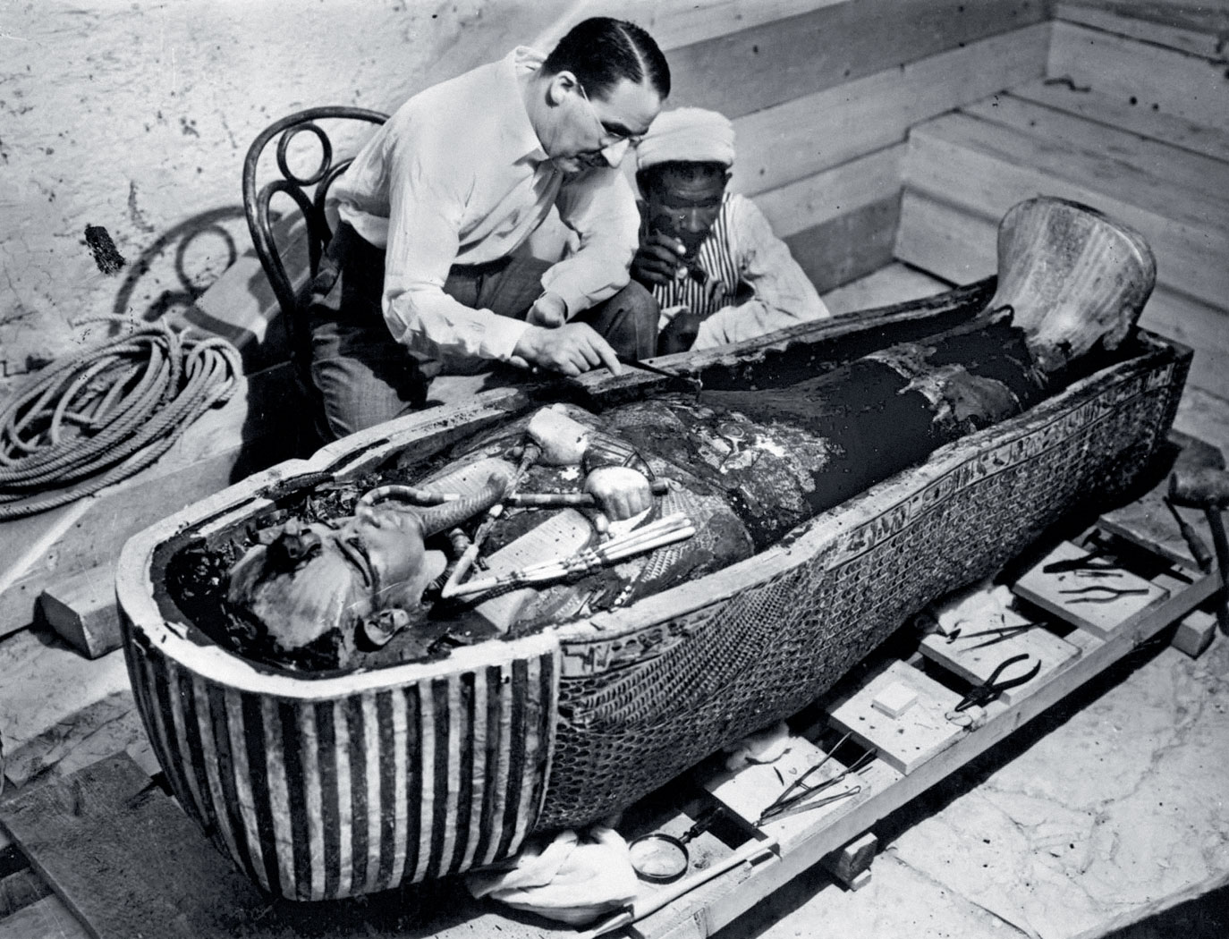 Nieetyczne zachowanie? Carter i Carnarvon odkryli pierwszy niemal nienaruszony grobowiec faraona – i to ze złotej epoki.