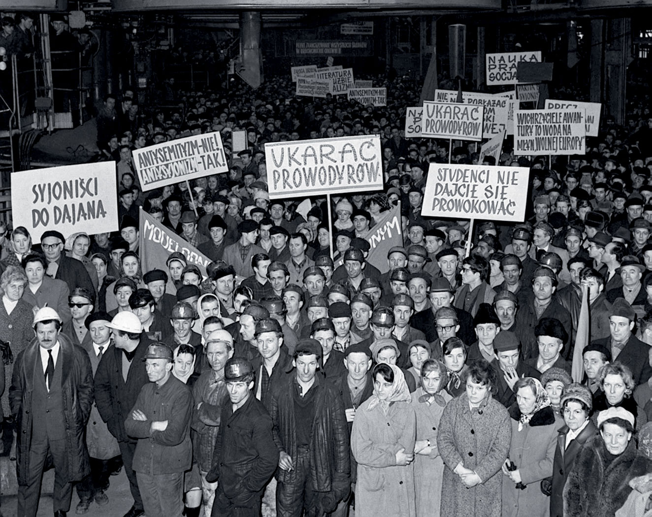 Jedną z ikon Marca ’68 są fotografie oficjalnych wieców – a na nich słynne transparenty „Oczyścić partię z syjonistów”, „Popieramy towarzysza Wiesława” albo „Studenci do nauki”, trzymane przez spędzonych na zebranie robotników. Na zdjęciach z fabrycznych masówek widzimy przede wszystkim smutne twarze: trochę przestraszone, trochę nieobecne. Co naprawdę myśleli „przedstawiciele klasy robotniczej”? Czy identyfikowali się z propagandowymi hasłami?