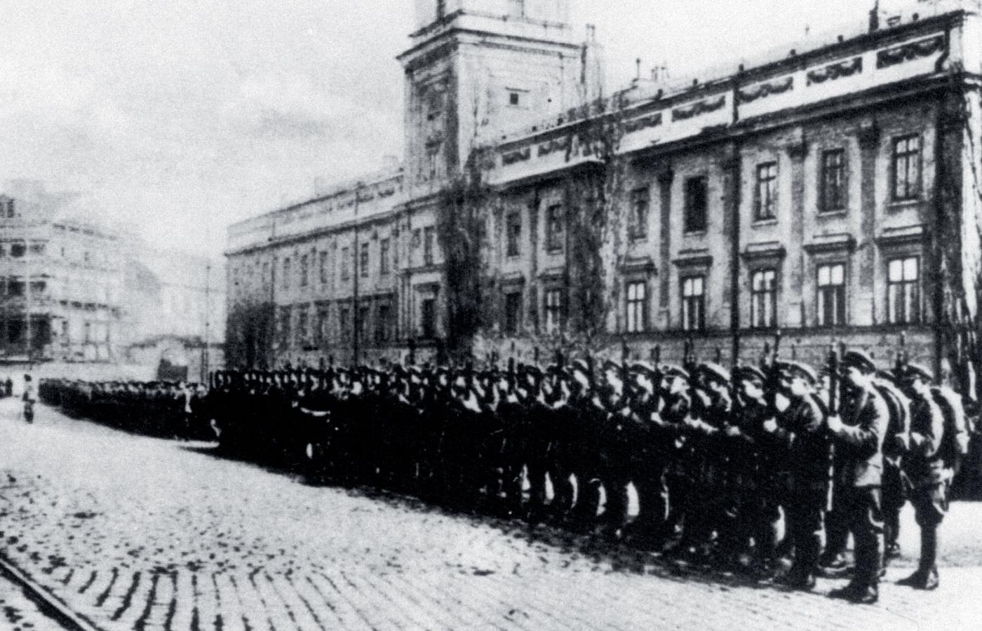 Stworzyć armię. Najważniejszym zadaniem, jakie postawił sobie Józef Piłsudski, było stworzenie polskiego wojska. Początki były trudne. Gdy Komendant przejmował z rąk Rady Regencyjnej władzę nad wojskiem, liczyło ono ok. 5 tys. żołnierzy. Dodać do tego należy Polską Organizację Wojskową (ok. 20 tys. marnie uzbrojonych członków). Spontanicznie tworzyły się grupy wojskowe jako niezależne oddziały terytorialne. Zaciąg był ochotniczy. Kadra oficerska rekrutowała się z Legionów Polskich, Polskiej Organizacji Wojskowej i Polaków z byłych armii zaborczych. Powstające jednostki były uzbrajane w broń pozostawioną przez Niemców i Austriaków. Brakowało mundurów, szczególnie butów. Zachowane raporty kwatermistrzowskie z tego czasu są wstrząsającą lekturą.