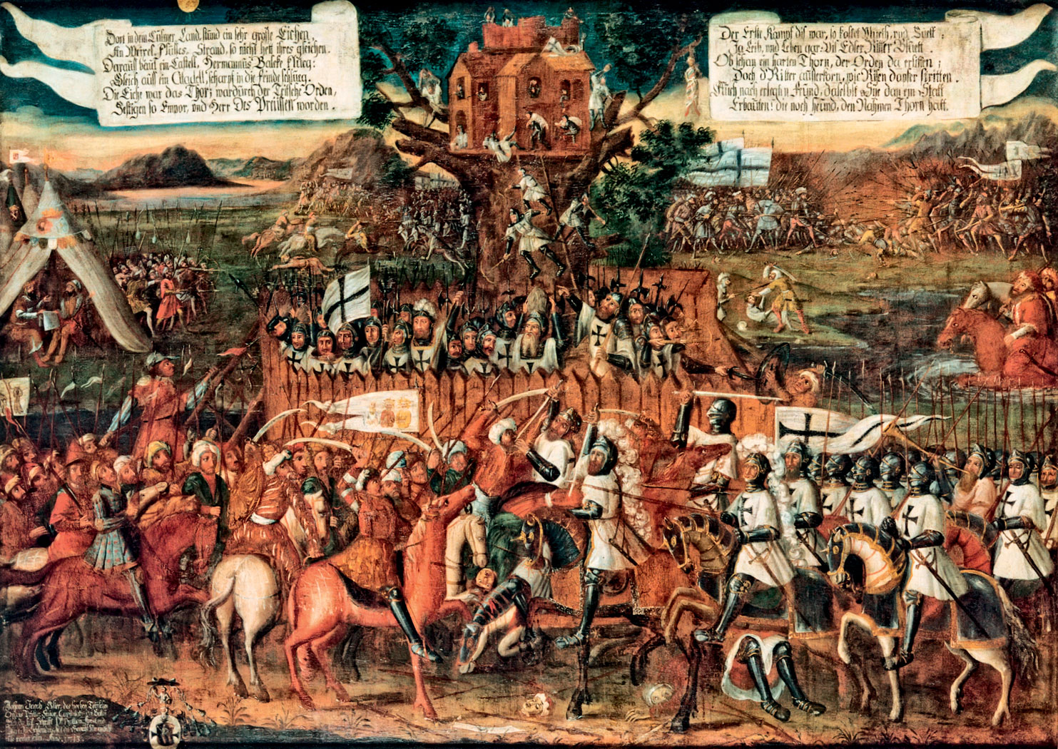 Zagarnięcie Pomorza Gdańskiego i innych ziem polskich przez Zakon Szpitala Najświętszej Marii Panny Domu Niemieckiego w Jerozolimie spowodowało, iż stosunek Polaków do niego był nacechowany przez wieki wrogością. Jednak negatywne wyobrażenie o zakonie rycerskim, z racji czarnych krzyży na białych płaszczach nazywanym krzyżackim, kultywowano tylko na ziemiach północnych. Jedynie tam polskie triumfy upamiętniano np. rocznicowymi medalami. W publicystyce politycznej i dziełach literackich od XVI w. polscy autorzy coraz rzadziej odwoływali się do zmagań z zakonem. Również Niemcy zupełnie przestali się interesować jego dziejami oraz spuścizną. Radykalna zmiana nastąpiła w czasie wojen napoleońskich. Fala nastrojów antyfrancuskich zaowocowała modą na poszukiwanie w przeszłości powodów do dumy jednoczącej naród niemiecki. Niosący chrześcijańską cywilizację na Wschód krzyżacy okazali się mitem, jakiego potrzebowano – zwłaszcza w Prusach. Na zlecenie króla Fryderyka Wilhelma III w 1813 r. architekt Karl Friedri Schinkel zaprojektował, nadawany za męstwo na polu walki, Krzyż Żelazny. Był on wzorowany na krzyżu z płaszczy zakonnych rycerzy. Trzy lata później powołano w Prusach komitet odbudowy zamku w Malborku. Odtąd w niemieckiej historiografii i publicystyce gloryfikowano krzyżaków, a władcy Prus uznali się za ich spadkobierców.